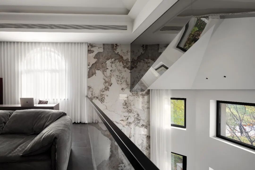忙碌、繁华、喧嚣都被远远地抛在身后,设计师采用了一系列含蓄而朴实无华的设计元素,打造进行自由对话的完美居所,将居住者从城市的喧嚣中暂时解放。