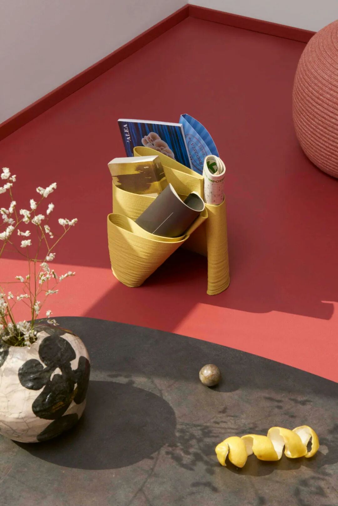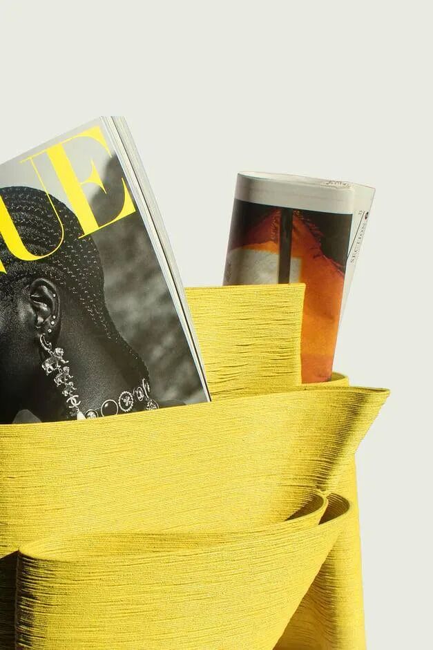 Falesia 是受岩石山峰启发的 Krill Design 杂志架。杂志架层层叠叠,蜿蜒曲折的建筑结构和优美的质感使杂志能够以柔和的曲线容纳。Falesia 是从回收的地中海柠檬皮中 3D 打印出来的,秉承不浪费的理念,它的设计经久耐用!