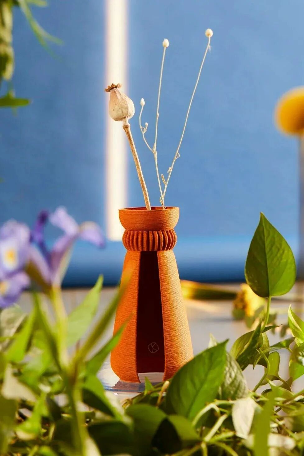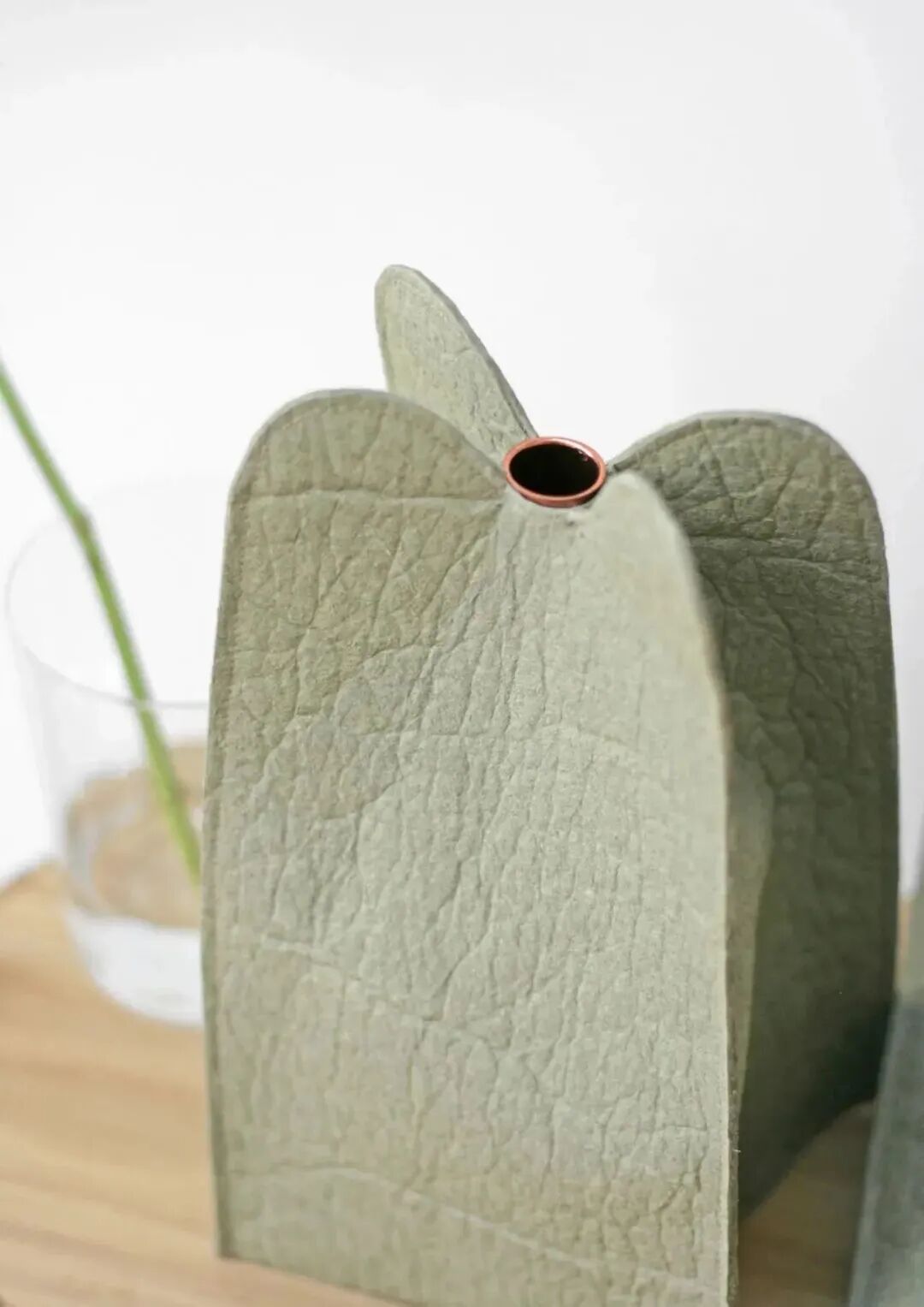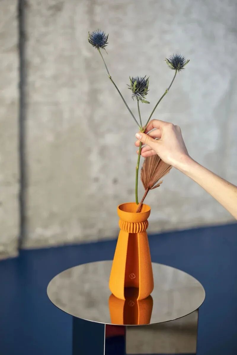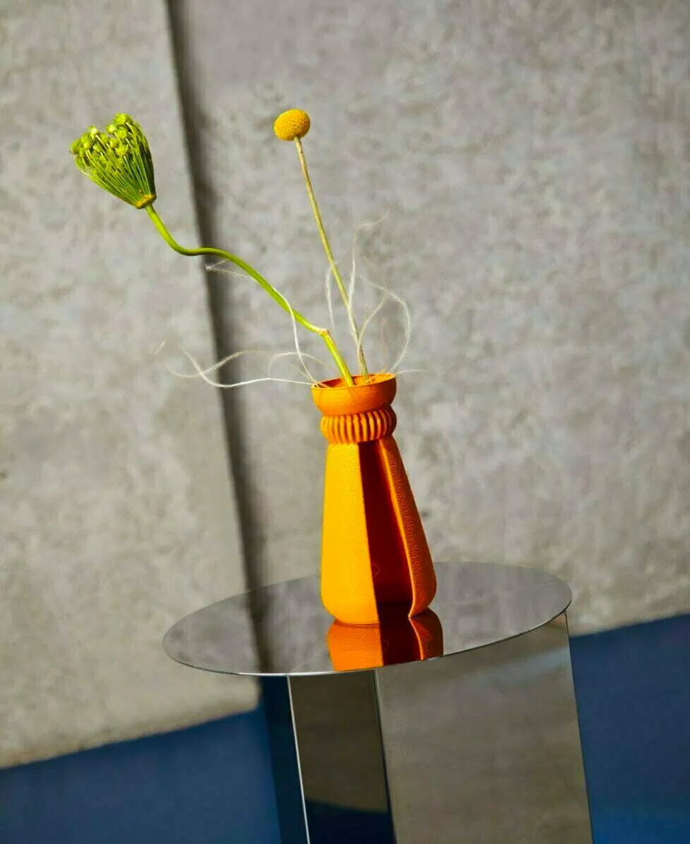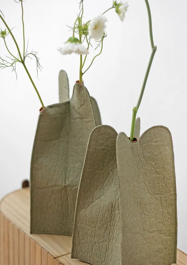 KOPA是一个由菠萝纤维制成的花瓶,它的灵感来自边缘闪亮的煤堆和沙丘,可用作装饰性花瓶。节省空间,易于存放和便携,是办公桌的优雅细节。