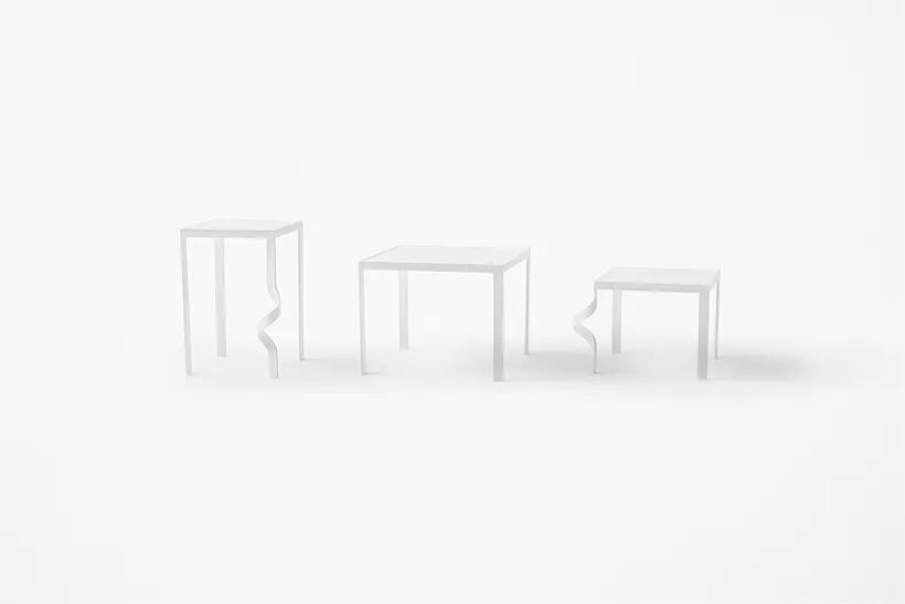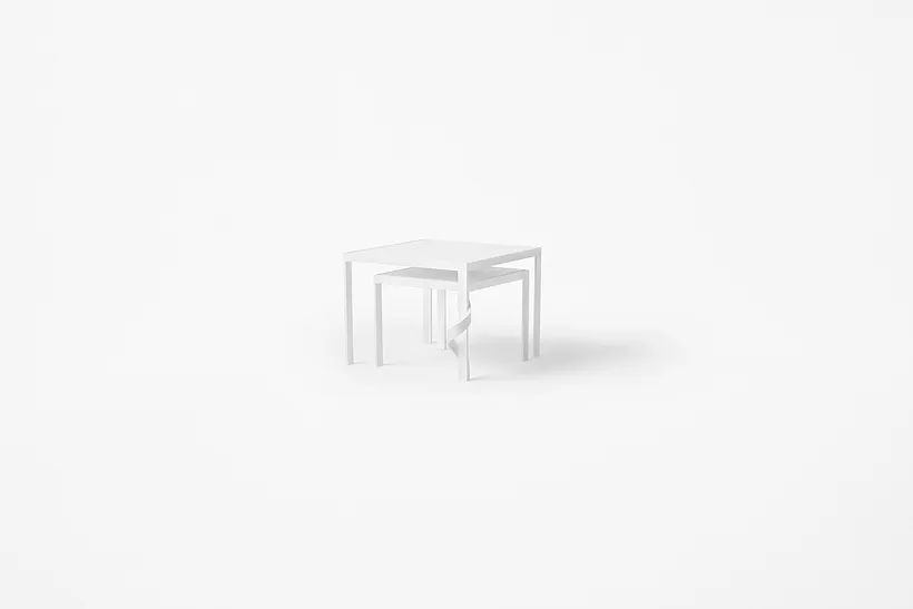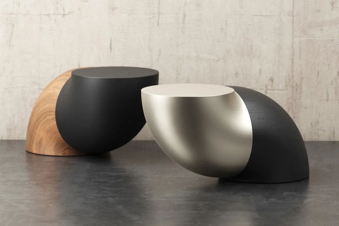 这款桌子有两个窍门——形式和颜色,该产品的不稳定形式来自于它包含两个相同的元素,这些元素的方向使桌子一个平坦的底座和另一个不稳定的弯曲底座。弯曲的形状比朴实的木制形状具有更暗或更主导的颜色,它的稳定性在于它的构造方式。