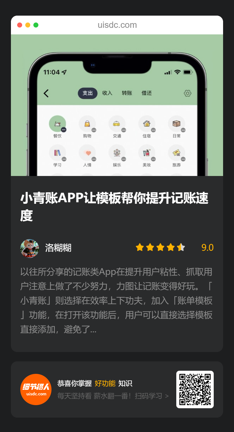 以往所分享的记账类App在提升用户粘性、抓取用户注意上做了不少努力,力图让记账变得好玩。「小青账」则选择在效率上下功夫,加入「账单模板」功能,在打开该功能后,用户可以直接选择模板直接添加,避免了因重复记录规律性的支出而带来疲惫感。提高效率让使用更便捷,也是提升用户粘性的重要方式啦!