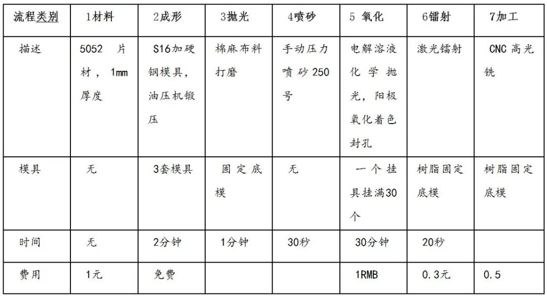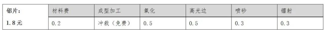 (图11,铝片工艺流程和成本)