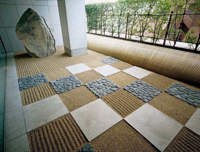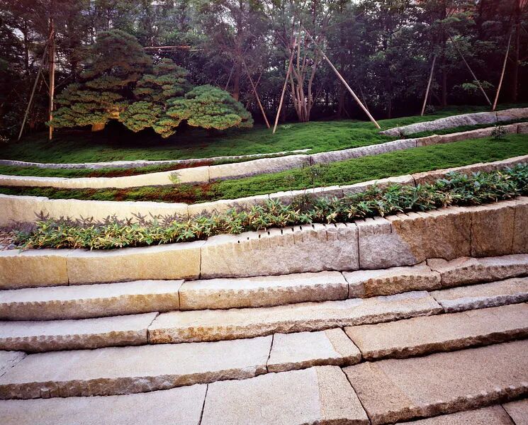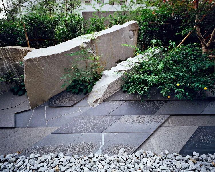 因为如果你了解枡野俊明,看过他早期的作品,你会发现,他早期的作品还严格秉承着传统日式枯山水的造园宗旨,而近年来尤其是在海外的作品则更多地加入了一些现代设计元素。