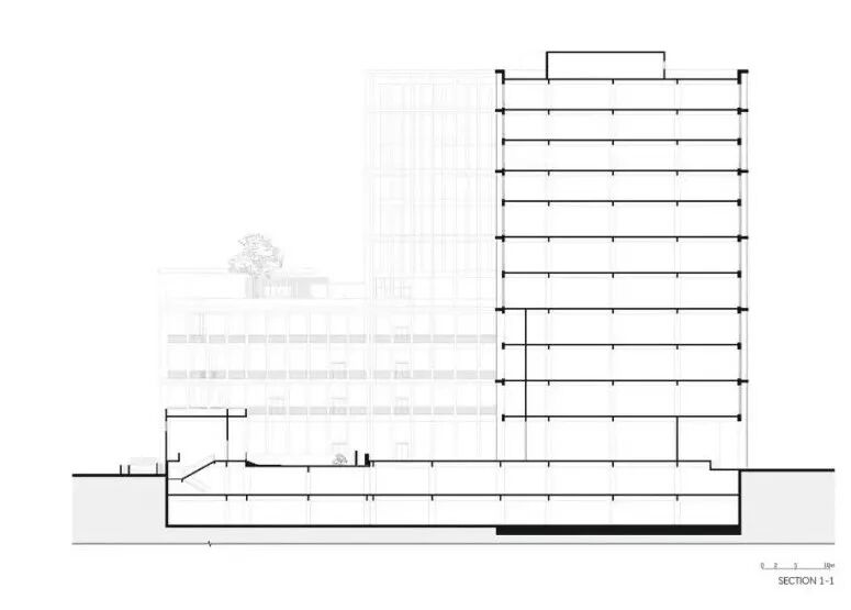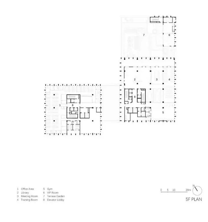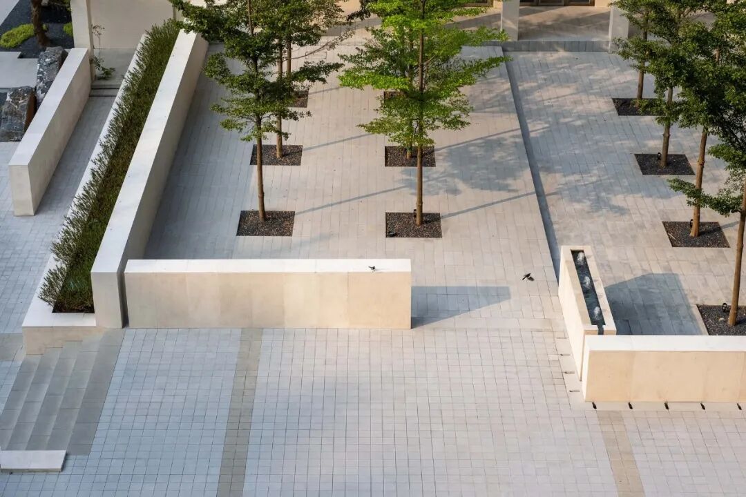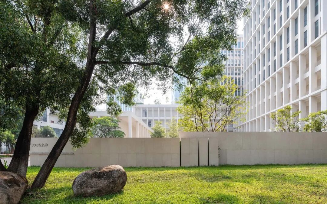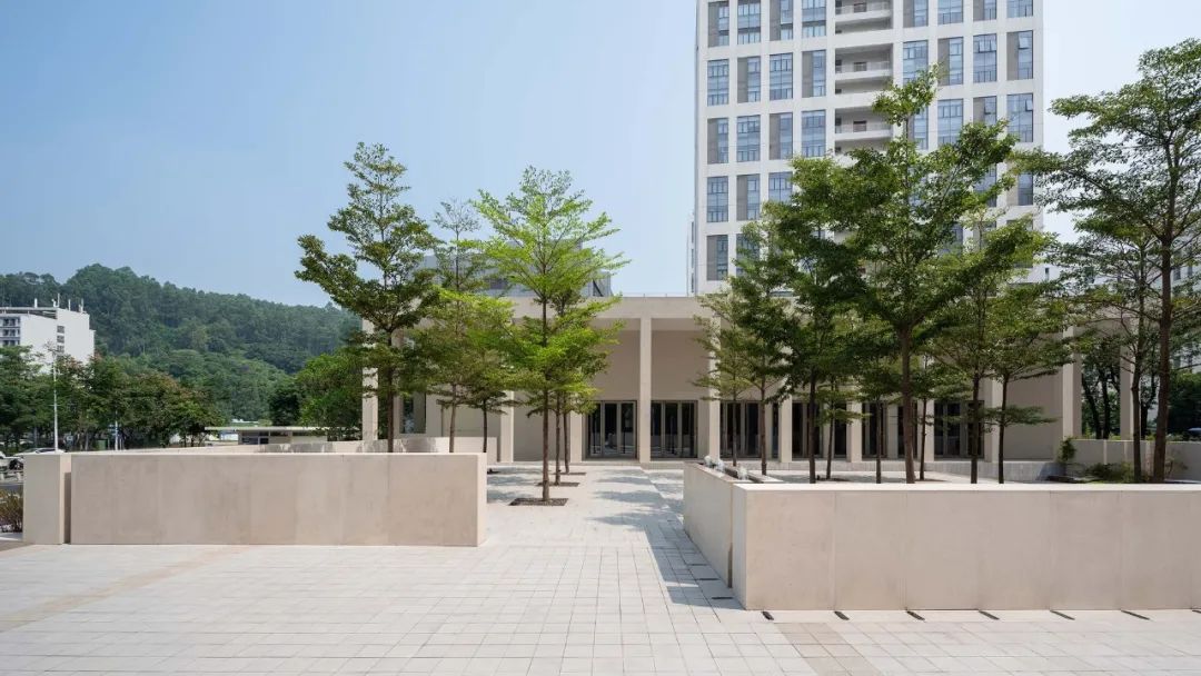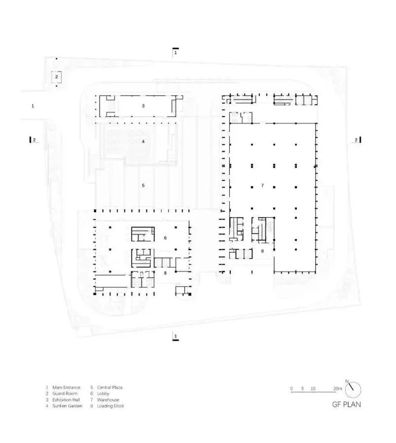 The wide-open ground floor plaza anchors the scattered buildings as pedestals, offering the campus a coherent and decent temperament. The loggia connecting the podium and the exhibition hall is not only a part of the facade but also an extension of the plaza. It generates a buffer zone, balancing between different scales of elements while blurring the boundary between indoors and outdoor. The sunken garden has three different height levels, with a water fountain and channel to create a peaceful environment. A visual corridor is linked across the axis between the sunken garden, lobby, and exhibition hall.