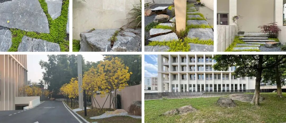 项目的设立目的是为原总部园区扩展另一工业园区,需要在30亩的面积下做出3.0的容积率。项目接手时大的体量关系根据需求已大体定型。我们的设计任务从外立面调整开始,到整合建筑景观,再到室内节点设计,逐步梳理,最终使园区成为一个有机的整体。场地的前身为采石场,在地下室开挖后发现众多孤石。对于这种特殊“场所遗产”,我们觉得需要将其保留且利用。这些石头之后作为重要的元素被放置在景观花园中,以此再现“场所精神”。