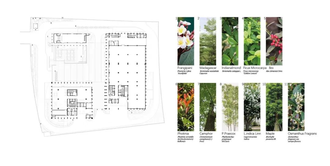 The terrace garden on the fifth floor surrounds the crape myrtle which is divided into three platforms. People meet and mingle through feature walls while shifting their attention from the surroundings to the greens. The pace gradually slows down through steps and height differences, and finally enters the tea room through the wooden fencing.