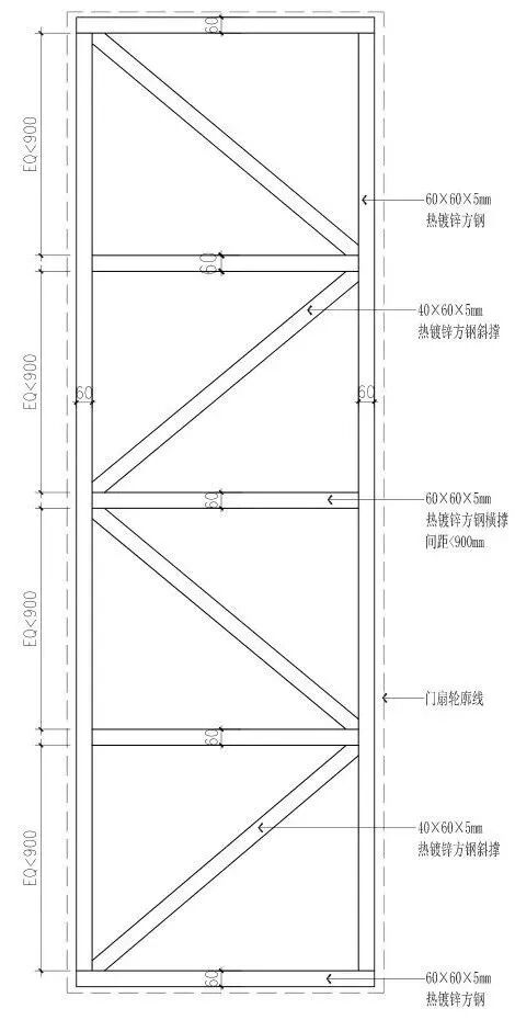 为保证这种高度的门更加稳固,就不能像普通的门一样,只用木料和板块来做门扇处理,需在门内增加钢架的形式来保证门的稳定性。