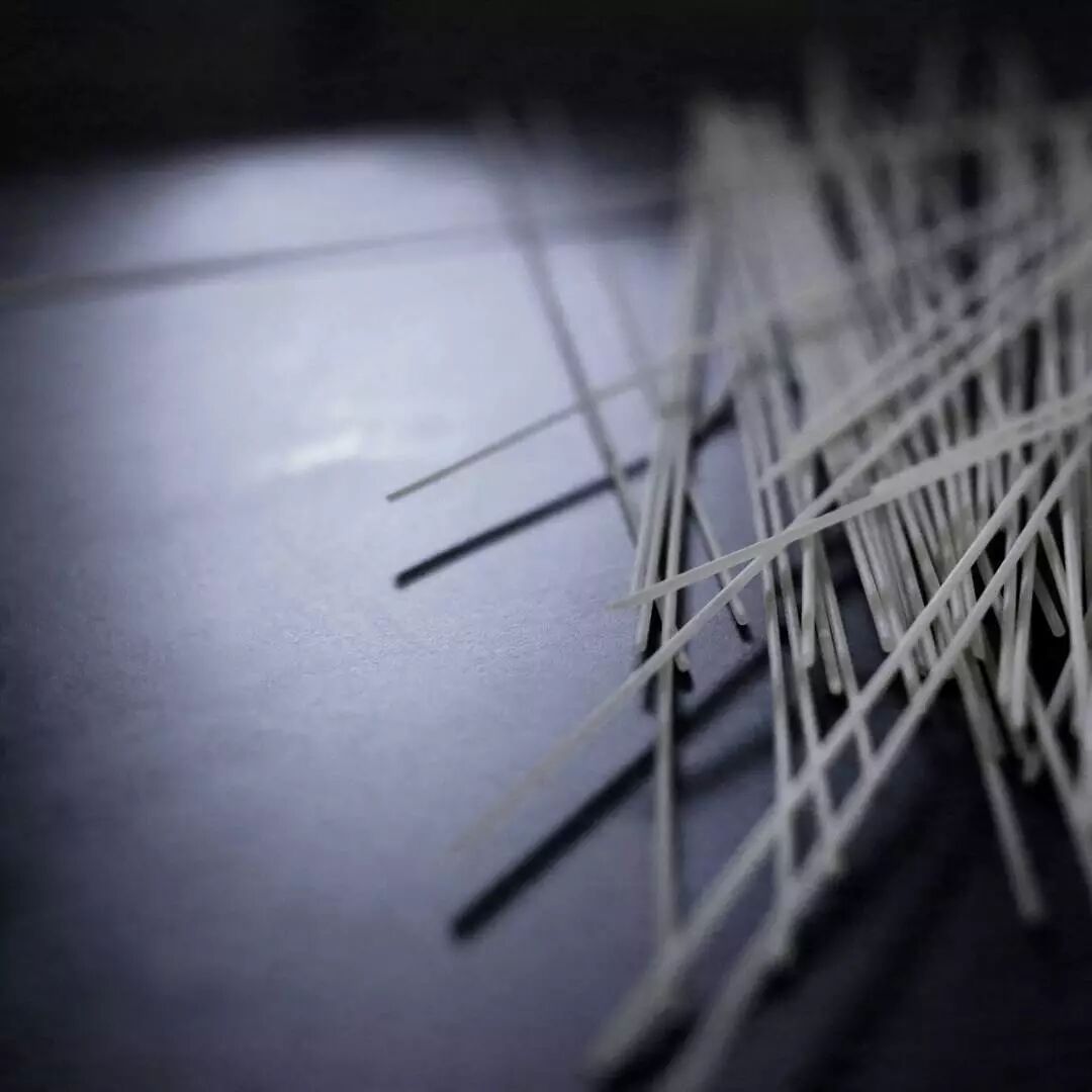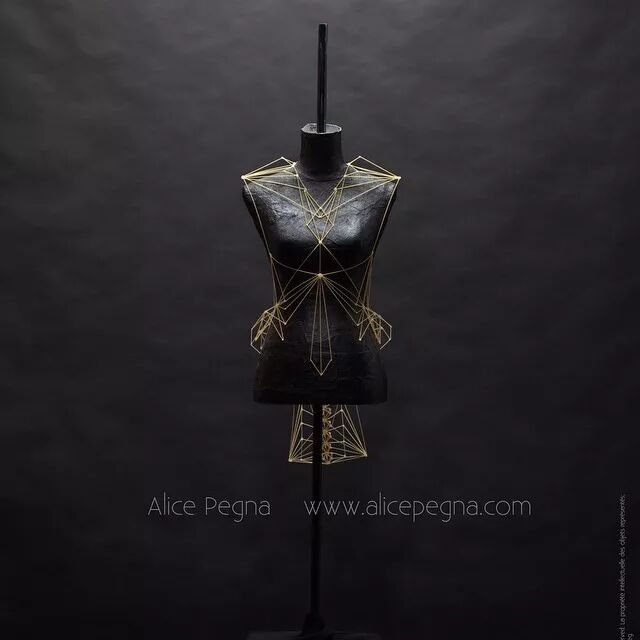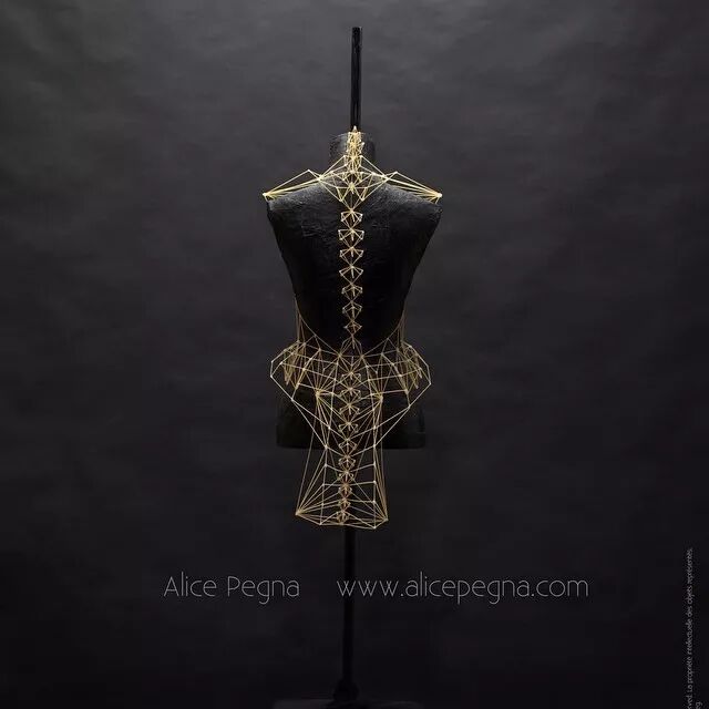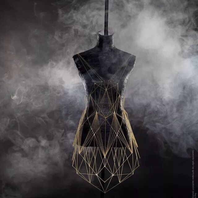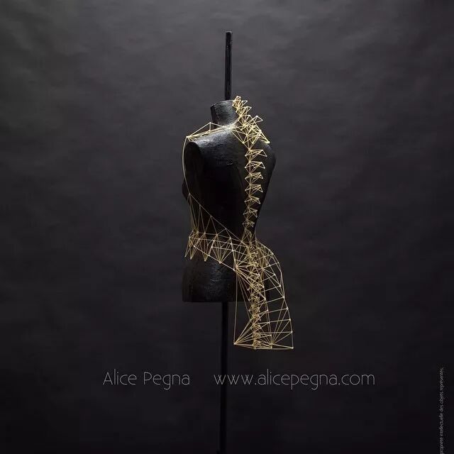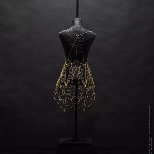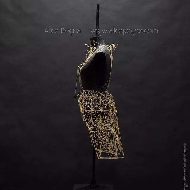 例如,意大利面条通常作为烹饪原材料,其干练的流线造型、精致而又具有一定的柔韧性,同时又保持坚硬并于易断裂的特点。因而她尝试选择意大利面来设计时装造型