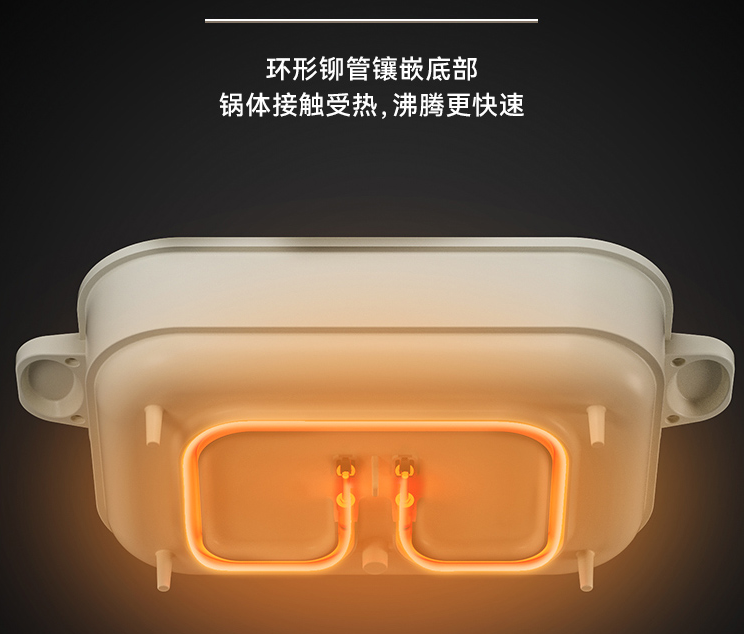 此外,采用嵌入式环形加热管,拥有1350w大火力,发热均匀且快速,食材从外到内都能轻松熟透,比一般锅子效率高!