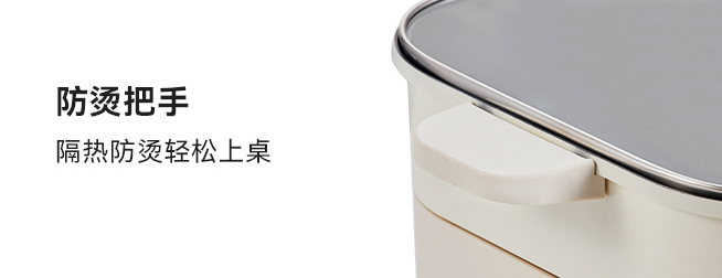 双耳防烫设计,端拿方便,不必害怕煮得正烫的时候提锅烫手。更有过热保护、防干烧等多重保护,出现过热或者干烧的情况会自动断电,使用安心放心。