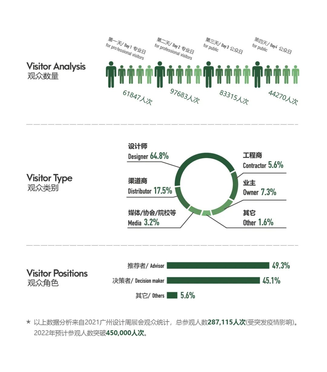 2022广州设计周专业观众数量预计逾45万人次,包括但不限于: