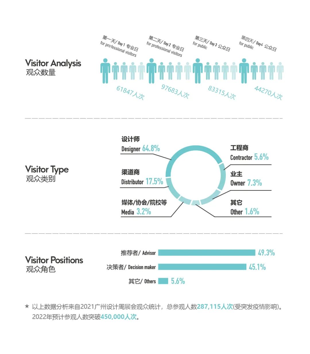 2022广州设计周专业观众数量预计逾45万人次,包括但不限于: