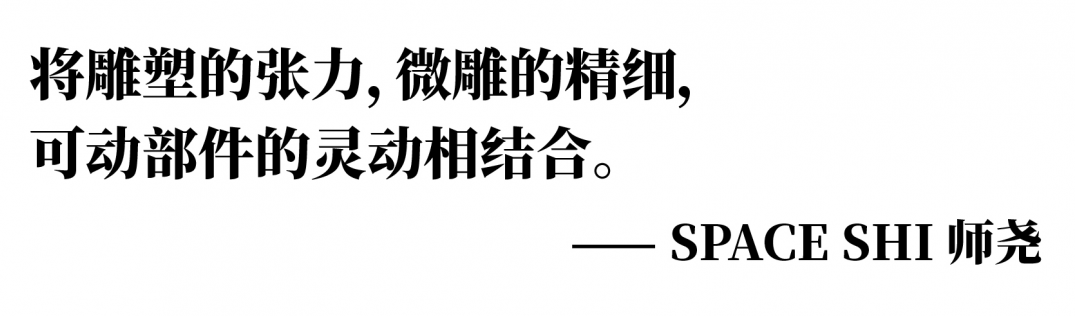 深圳市师尧首饰设计有限公司旗下品牌SPACE SHI 师尧原创工作室,作品用过去、现在、未来三个时间维度阐述一个完整的宇宙观,将雕塑的张力,微雕的精细,可动部件的灵动相结合。代表作品中国风太空系列首饰及艺术周边。