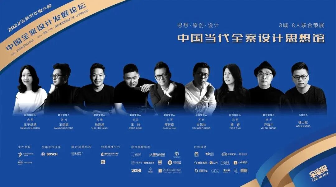 2022金案奖年度大展,由广州设计周与WCDA全案设计联盟联合发起,并链接八位来自不同城市的全案精英设计师联合策展。中国当代全案设计思想馆展览+论坛双重赋能,以全案EPC设计生态系统为基础核心,将设计师在“全案设计”中所遇到的各环节痛点尽数击破,为设计师-材料商的信息交流、设计师的真正快速成长提供专业平台。围绕全案设计的学术研讨进行空间叙事,最终成就携手共创全案生态、传承交融全案知识的盛景。