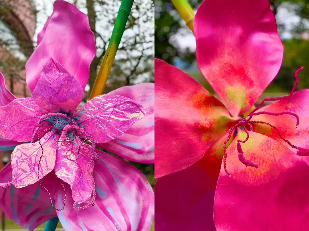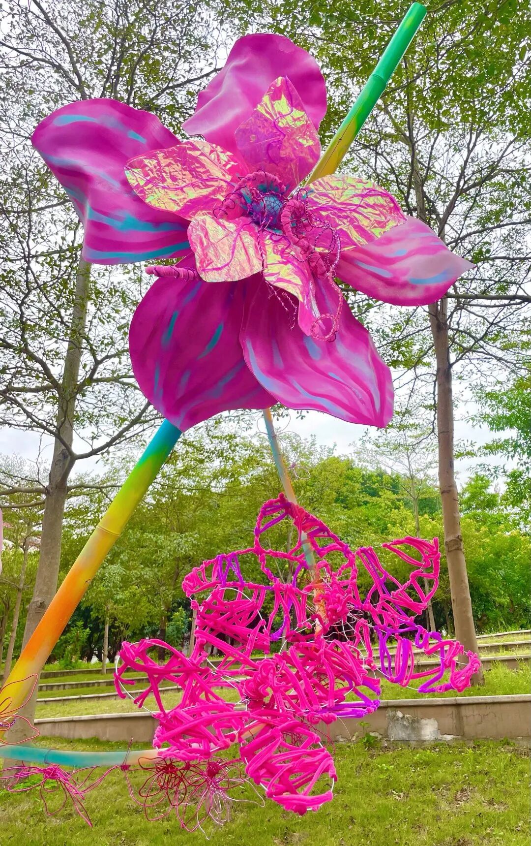 大花蕙兰以插接结构组合而成,在阳光之下呈现出变幻莫测的光影效果。晶莹剔透的露珠衬托着希望的光与坚强的生命。金线缠绕的猪笼草,代表着“猪笼入水,财源滚滚“,新的一年有着好兆头。世间万物犹如一个个“彩色生灵”,春日之花千姿百态,恰如我们的人生各自精彩。