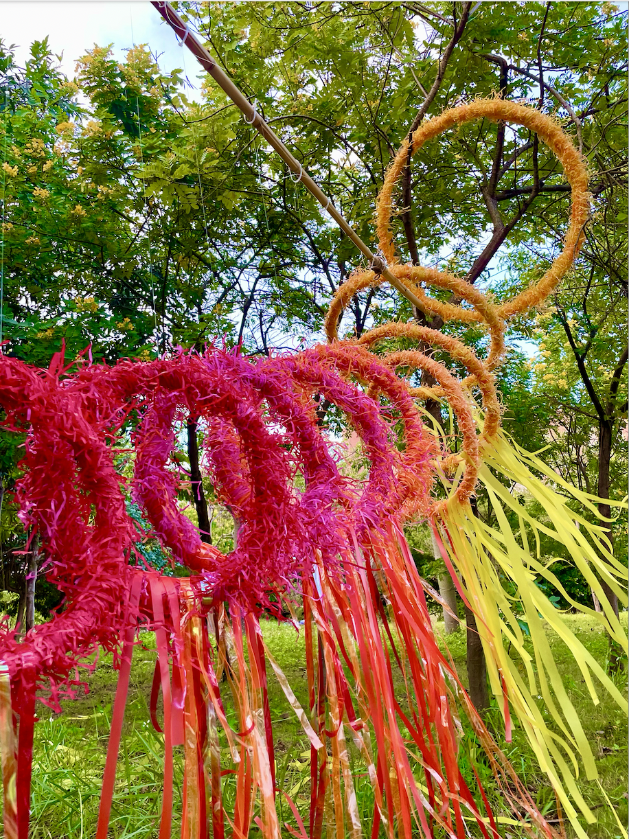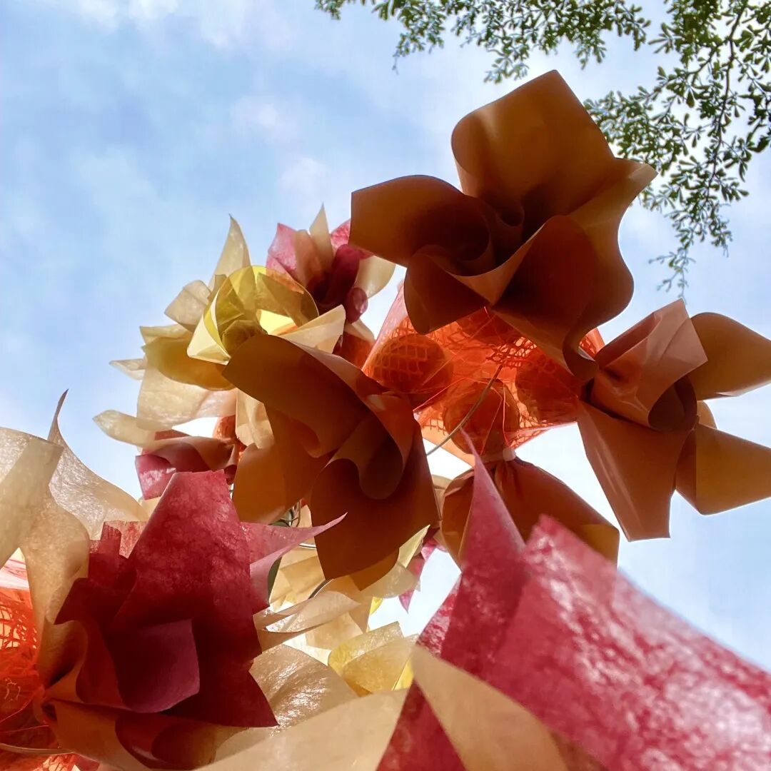 作品以号角作为创作灵感,搭配热成像配色,从橙到红逐渐热烈。流苏随风飘曳,在光线下投射出不同颜色的光影。作品形态象征了吹响生命的号角,同时寓意着无数生命的迸发,肆意生长的勃勃生机。