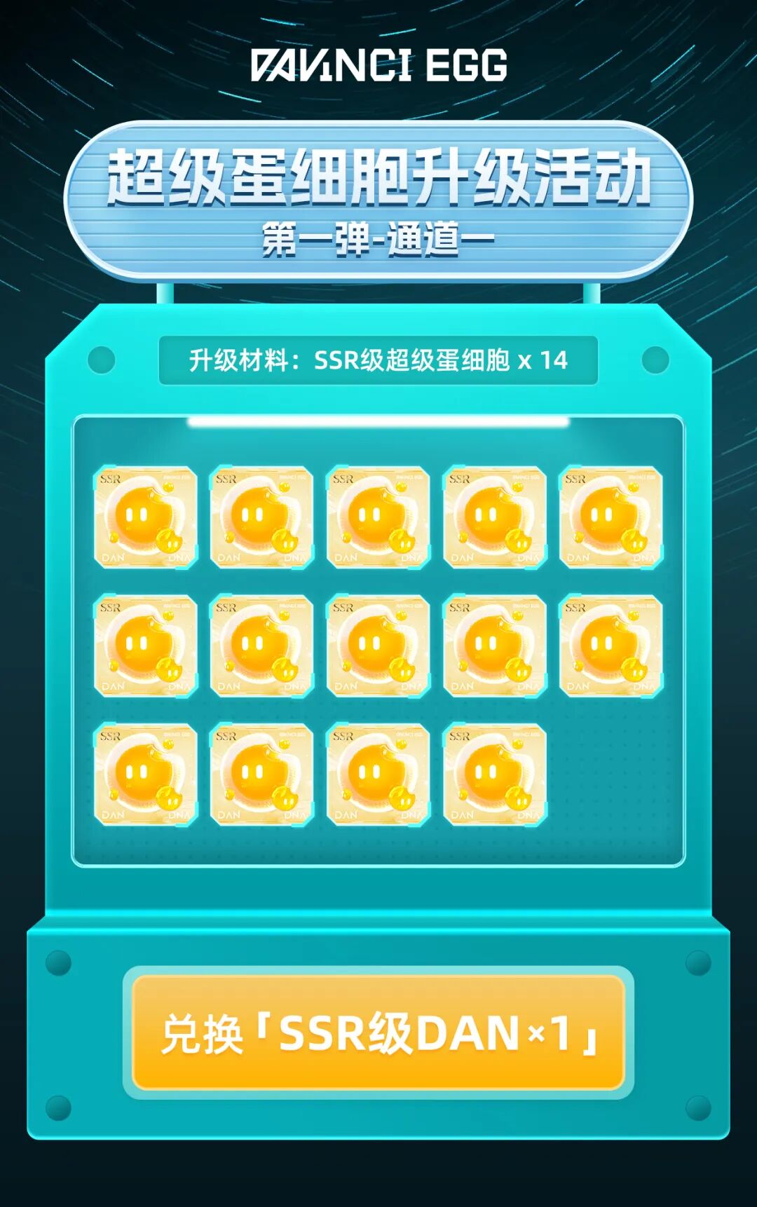 SSR超级蛋细胞的第一波活动来啦,本次将开启两个活动通道供用户参与兑换合成,官方将在活动开始前与活动结束后两个时间段进行SSR级DAN的采购。