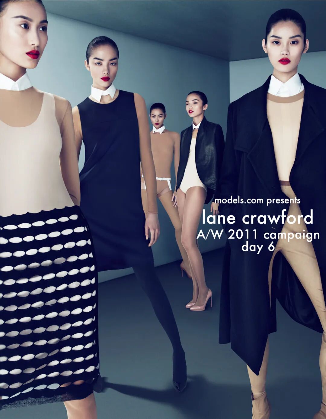 小明也是美妆脸,走红之后彩妆、护肤品广告也没少过。11年秋冬和一众国模拍摄了Lane Crawford广告。