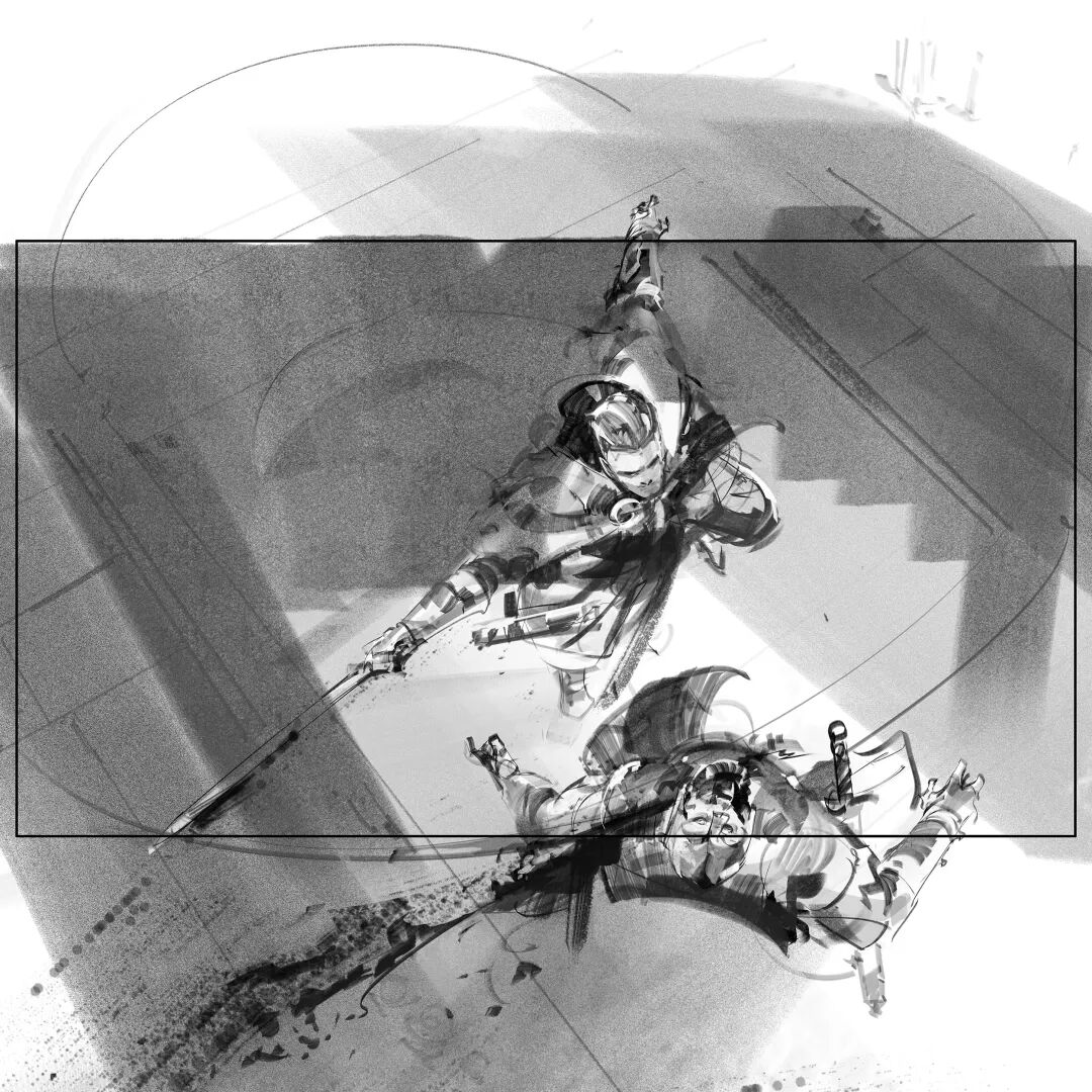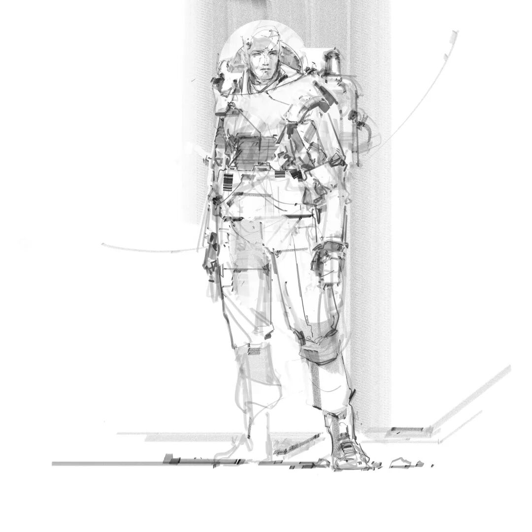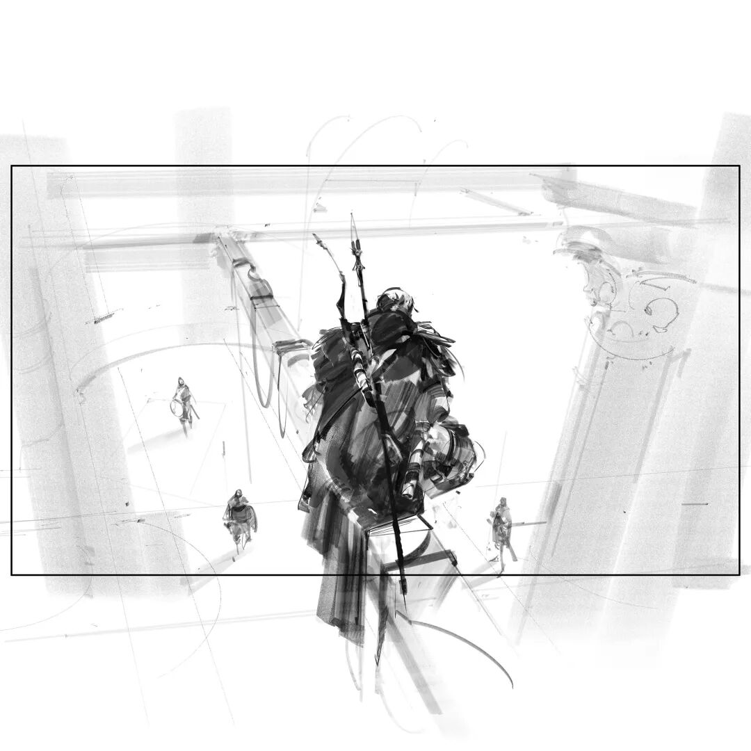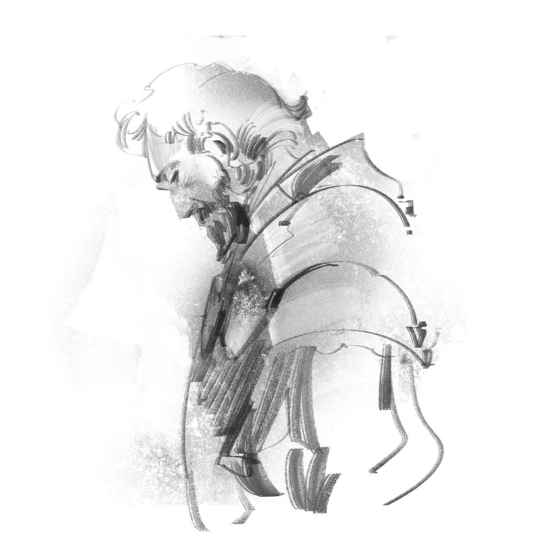 作为一位同影视行业巨头以及游戏大厂深度合作多年的资深老炮儿,Richard Anderson多年来一直保持黑白稿速写习惯,他的概括能力非常扎实,“乱”中有序,整体笔触利落干脆,造型能力相当强悍。