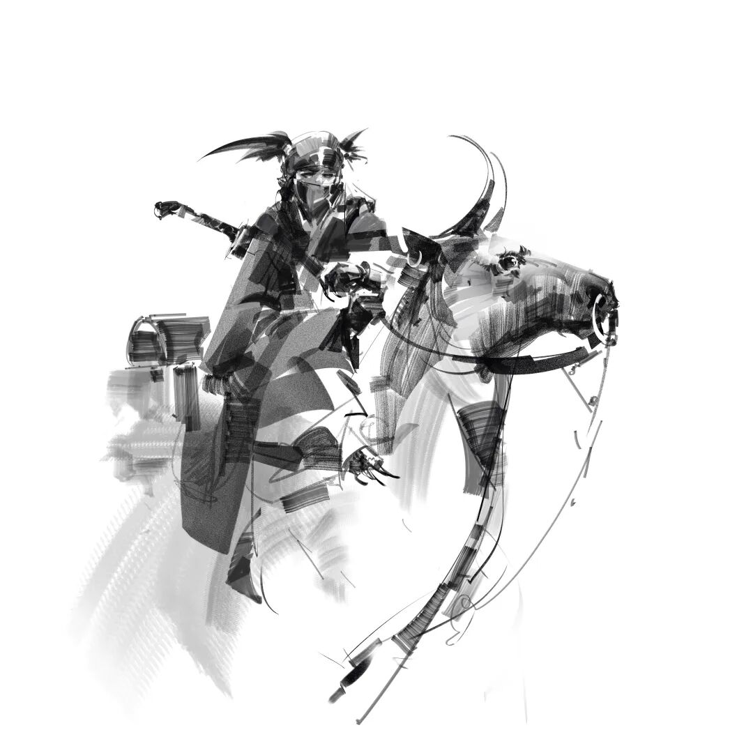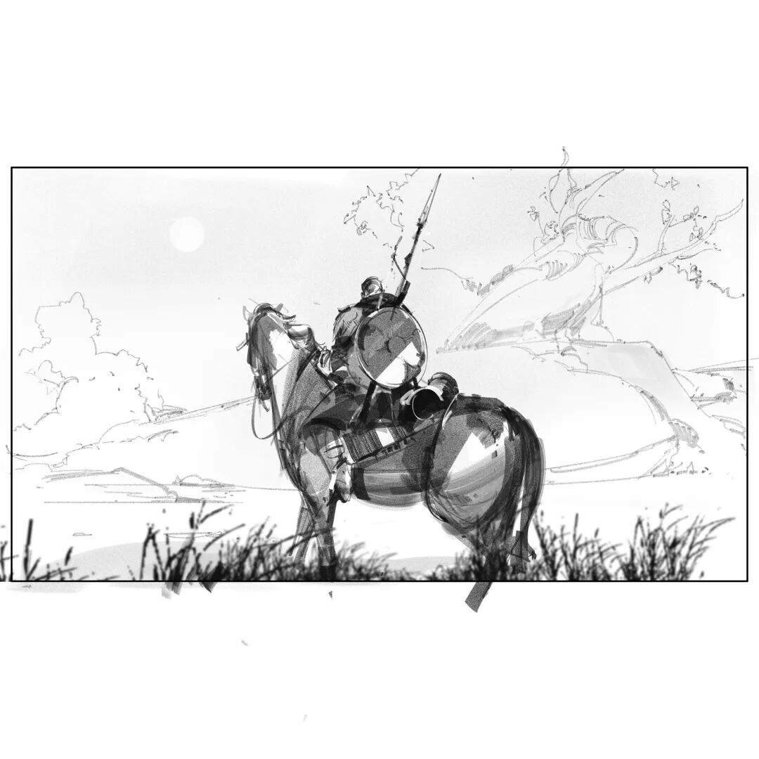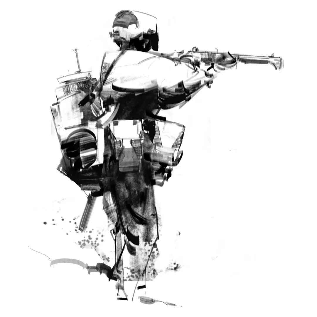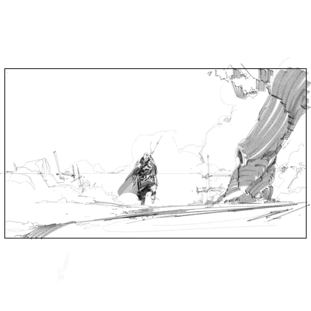 作为一位同影视行业巨头以及游戏大厂深度合作多年的资深老炮儿,Richard Anderson多年来一直保持黑白稿速写习惯,他的概括能力非常扎实,“乱”中有序,整体笔触利落干脆,造型能力相当强悍。