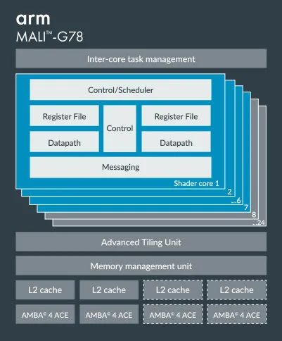 这是 Mali 最新的 GPU 架构,Mali-G77、G78 以及最新推出的 G710 都是这个架构。对应的中低端架构为 G5XX。