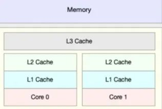 CPU 的缓存有 L1/L2/L3 三级缓存。L1 缓存和 L2 缓存是在 CPU 核心内部的(每个核心都配有独立的 L1/L2 缓存),L3 缓存是所有核心共享的。缓存是 SRAM,速度比系统内存(DRAM)要快非常多。