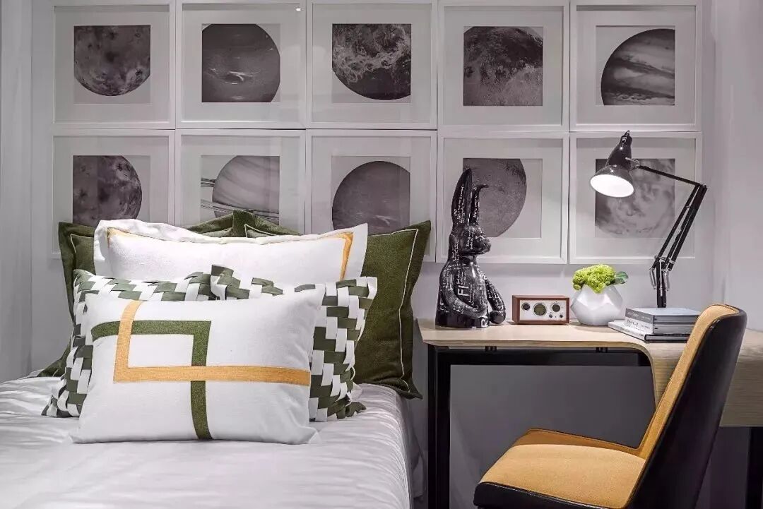 下图为了表示卧室的各种情况,采用了两张单人床的布局。可以看到主要有以下几点: