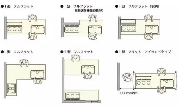 对面式布局考虑到厨房与餐厅的交流,在操作台留出一定的空间作为小吧台使用,因为较宽,空间富裕的做到900mm以上为佳。
