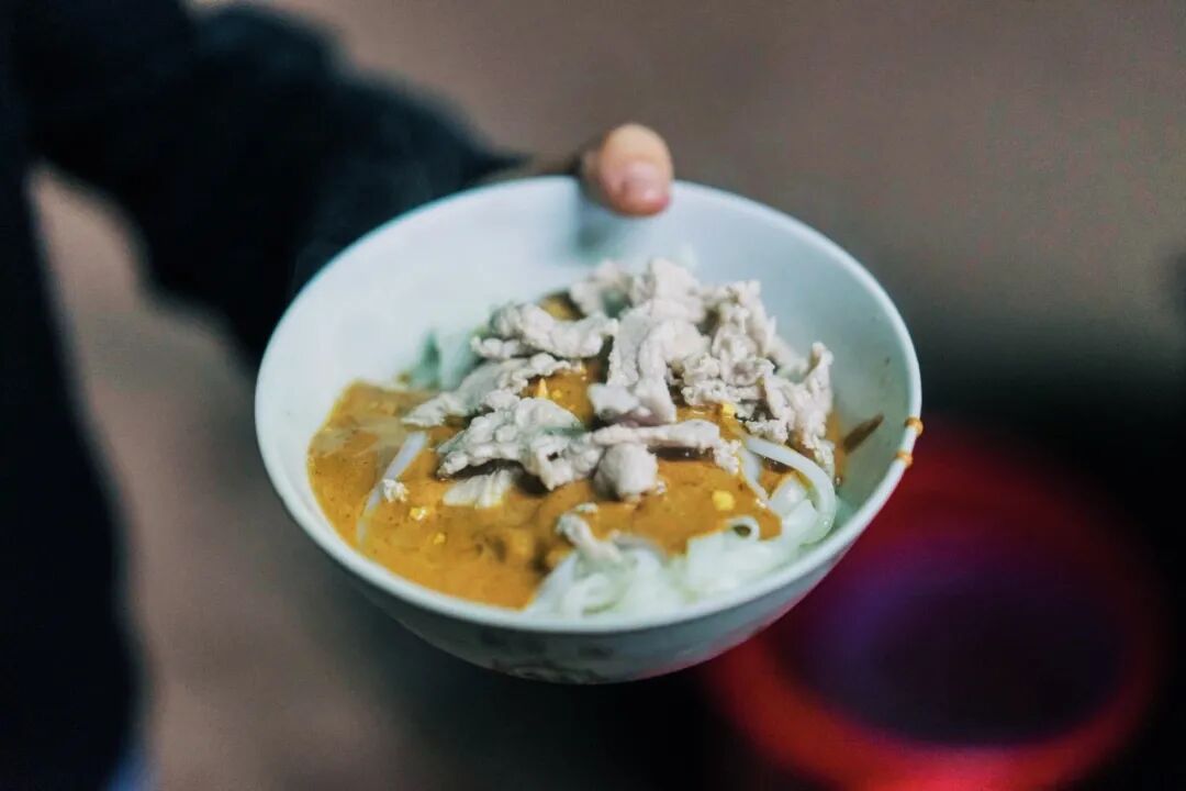 当地人夜宵喜食热粥,一块鲜冷鱼肉,蘸上本地的豆瓣酱,不知不觉下一碗浓稠的白粥。