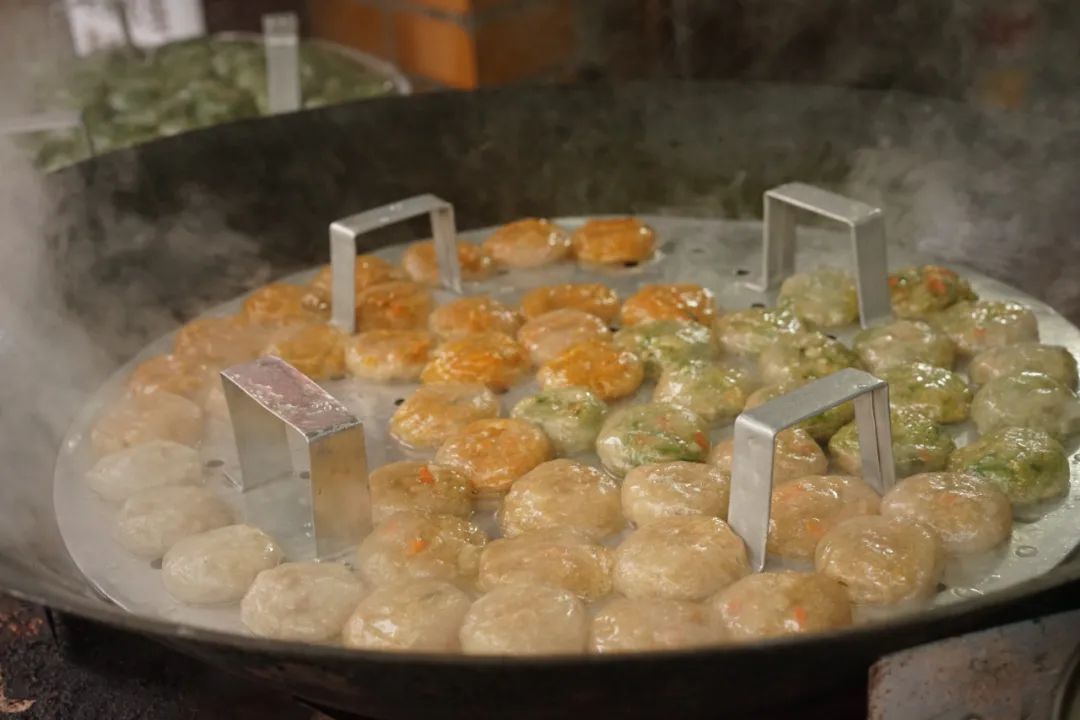不约而同地被这盏灯光、被这冒着热气的小摊子,吸引而来,虔诚地接过这碗煮了四十余年的点心,坐在店里默默地吃完。
