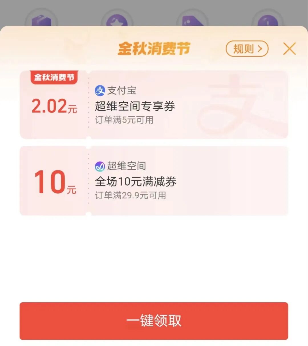 据了解,超维空间是唯一一家受邀参加“金秋消费节”活动的数字藏品平台。活动期间,支付宝用户在APP首页搜索“超维空间”进入小程序,可领取10元满减券(可多次领取)、超维空间专享券等多种优惠券,在购买数字藏品支付时,还可享受金秋消费节红包和支付宝随机立减等折扣。