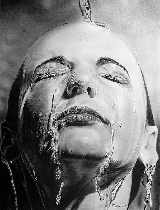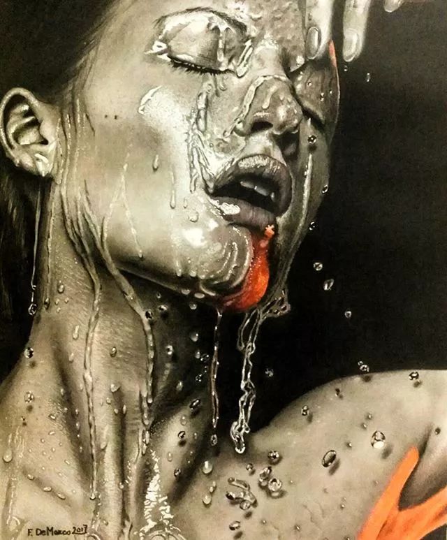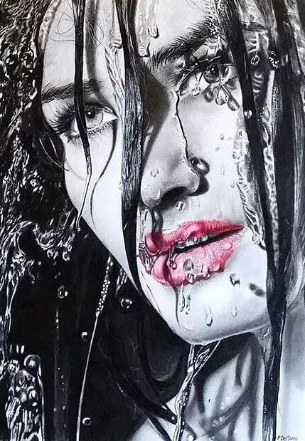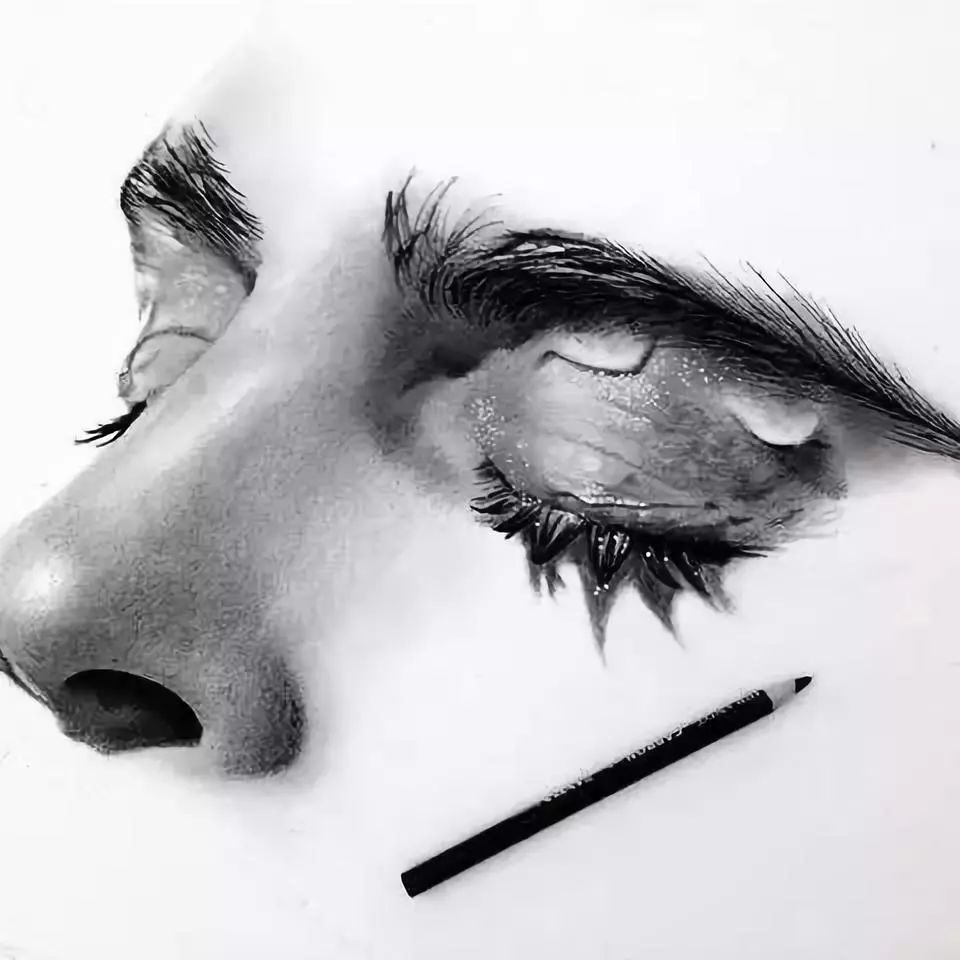 下睫毛上挂着的几滴水珠,包括水珠的投影