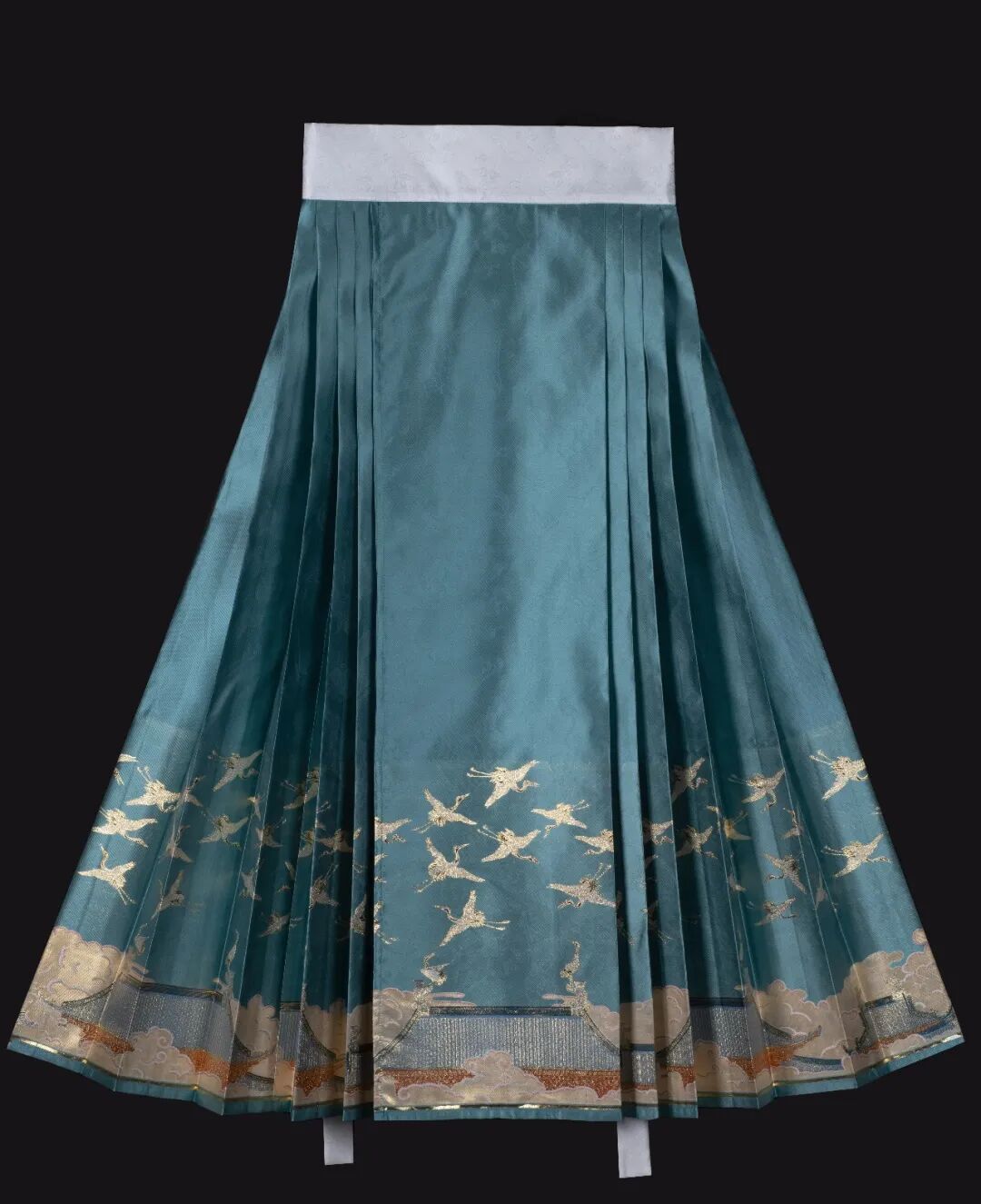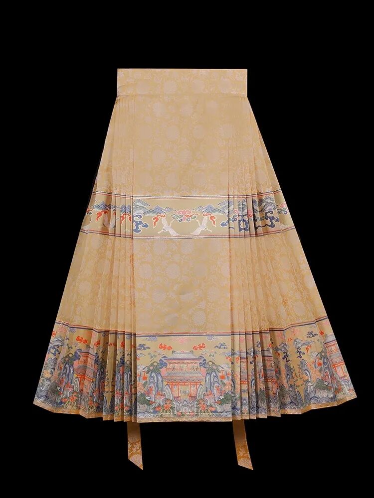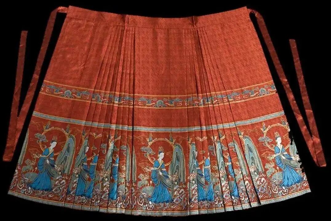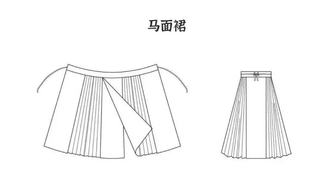 那什么是马面裙呢?马面裙,又名“马面褶裙”,是中国古代汉族女子主要裙式之一,前后里外共有四个裙门,两两重合,中间裙门重合而成的光面俗称“马面”。