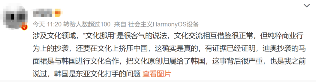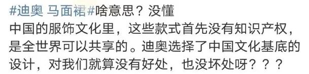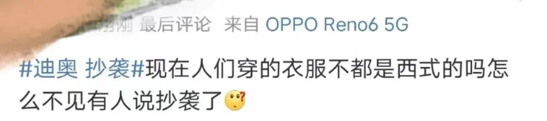 虽然大部分网友是谴责和反对这种行为的态度,但也有部分网友却表示是国人太敏感!认为“服装设计借鉴很正常,我们现在穿的服饰也是西方传来的……”。