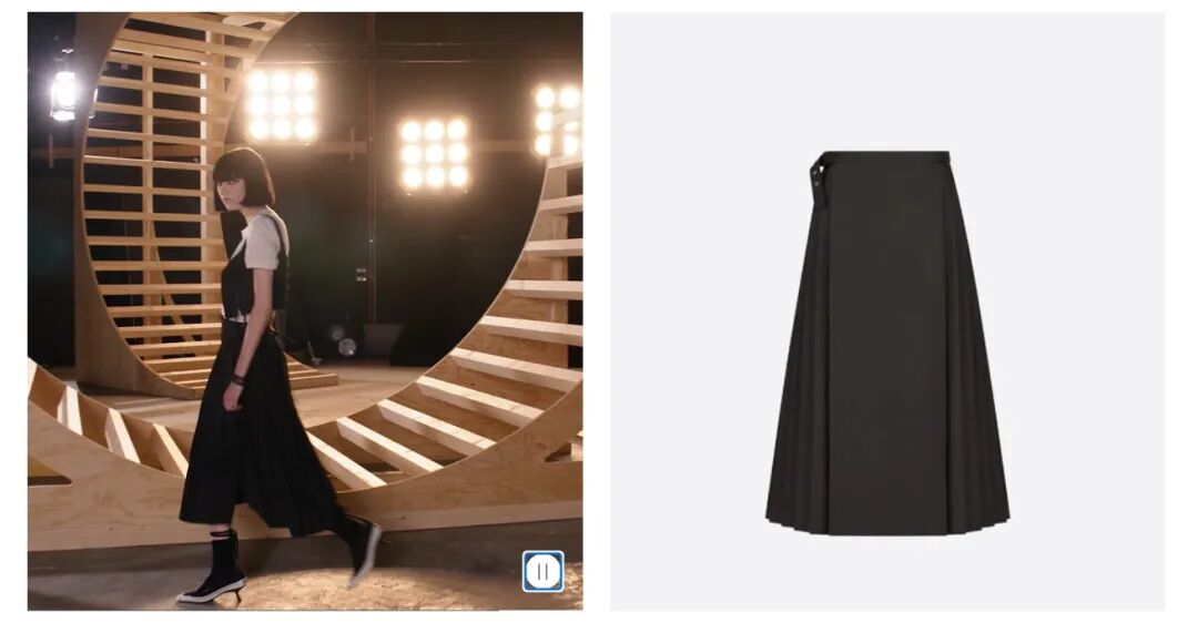 目前而言,最具争议的地方就在于,中国马面裙的设计中,一般为两片式,前后光面,左右打褶,是一种罕见而典型的形制。而迪奥这件裙子不止廓形,结构都非常相似,同样是两片共腰+裙门交叠+前后开叉的。