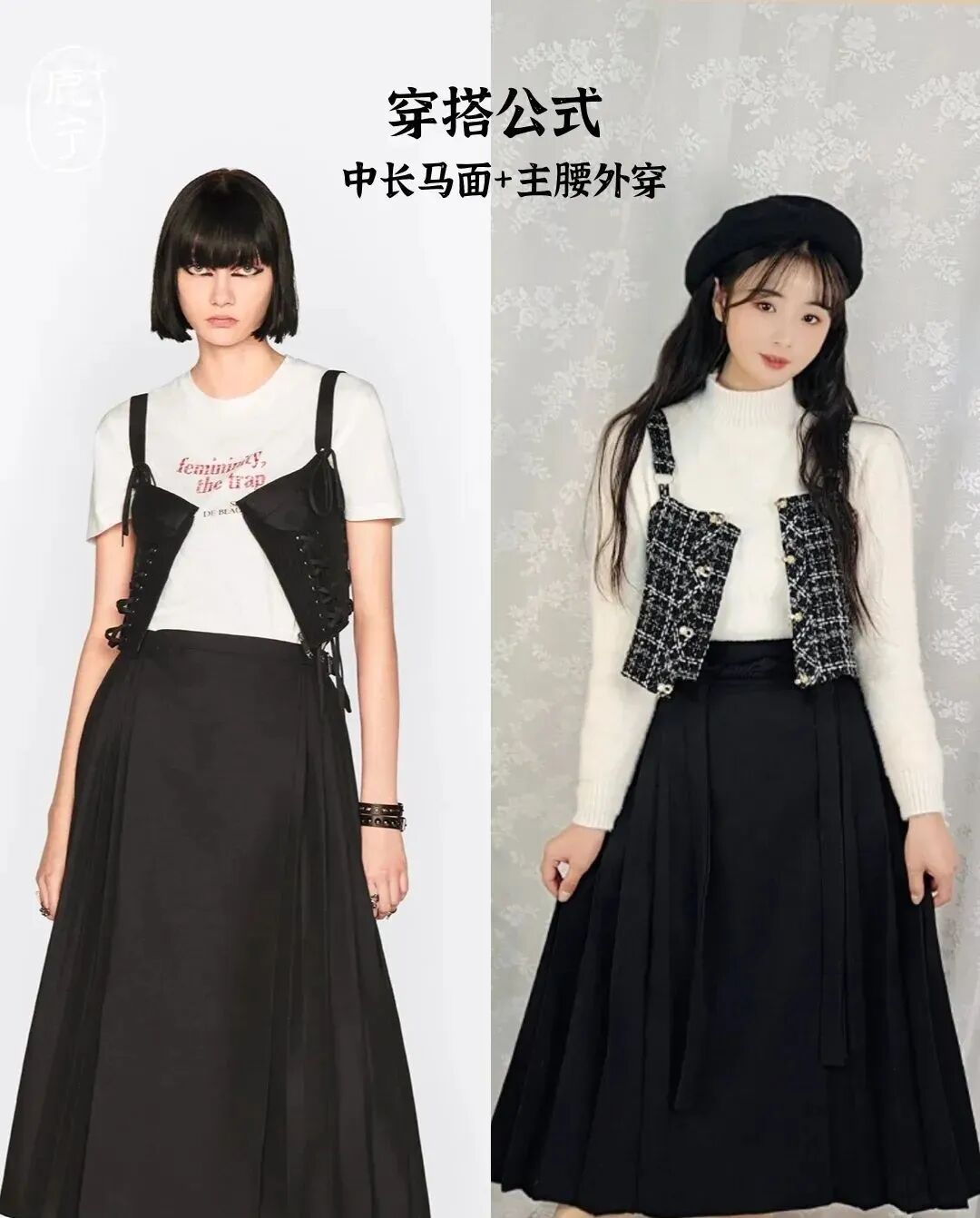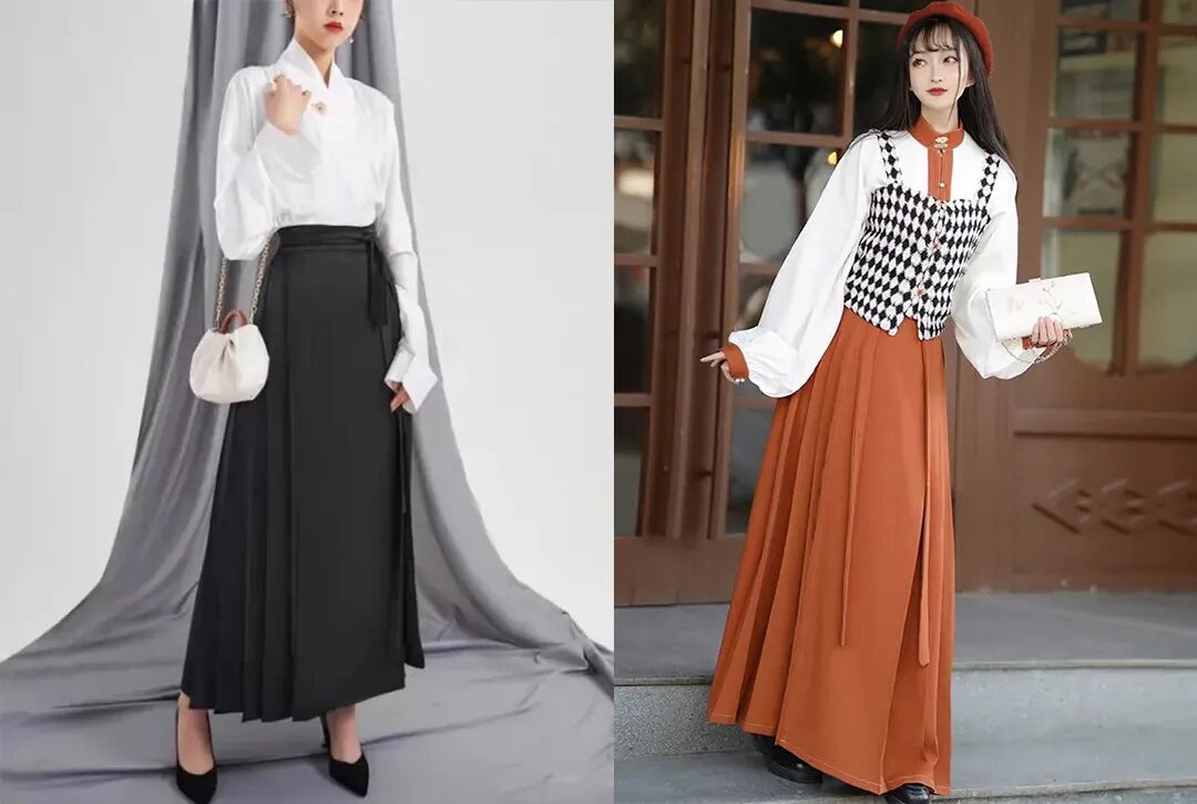 这样款式的裙子相信我们并不陌生,某宝同款包邮中长裙中这样的款式也很多,但其实,这种款式裙装的灵感来源正是我国古代的传统服饰“马面裙”,我们如今看到的都是它的改良款。