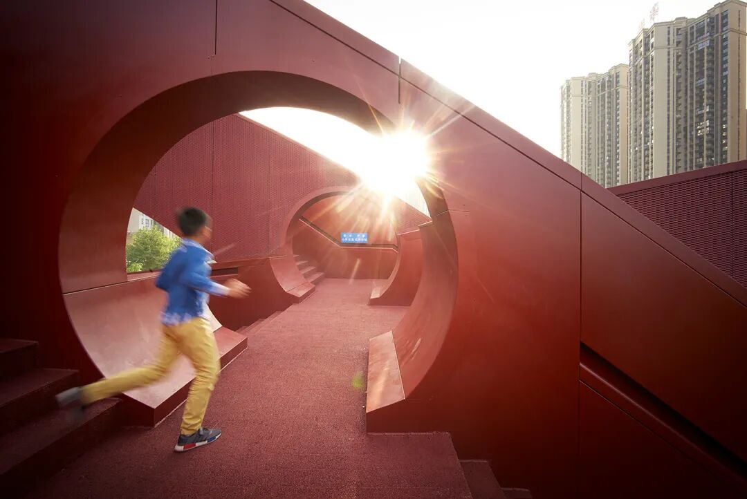 红色的波浪形类似于象征幸运和繁荣的中国传统结艺术,这座桥为其丰富的环境提供了壮观的景色——河流景观、城市景观、梅溪湖和周围的群山。