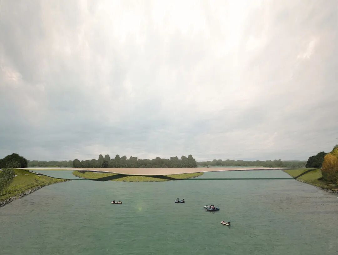 由此产生的楼梯看起来像从桥脊伸出的翅膀,提供了通往岛屿的通道,它们也成为可以与河景一起欣赏的景观的一部分。
