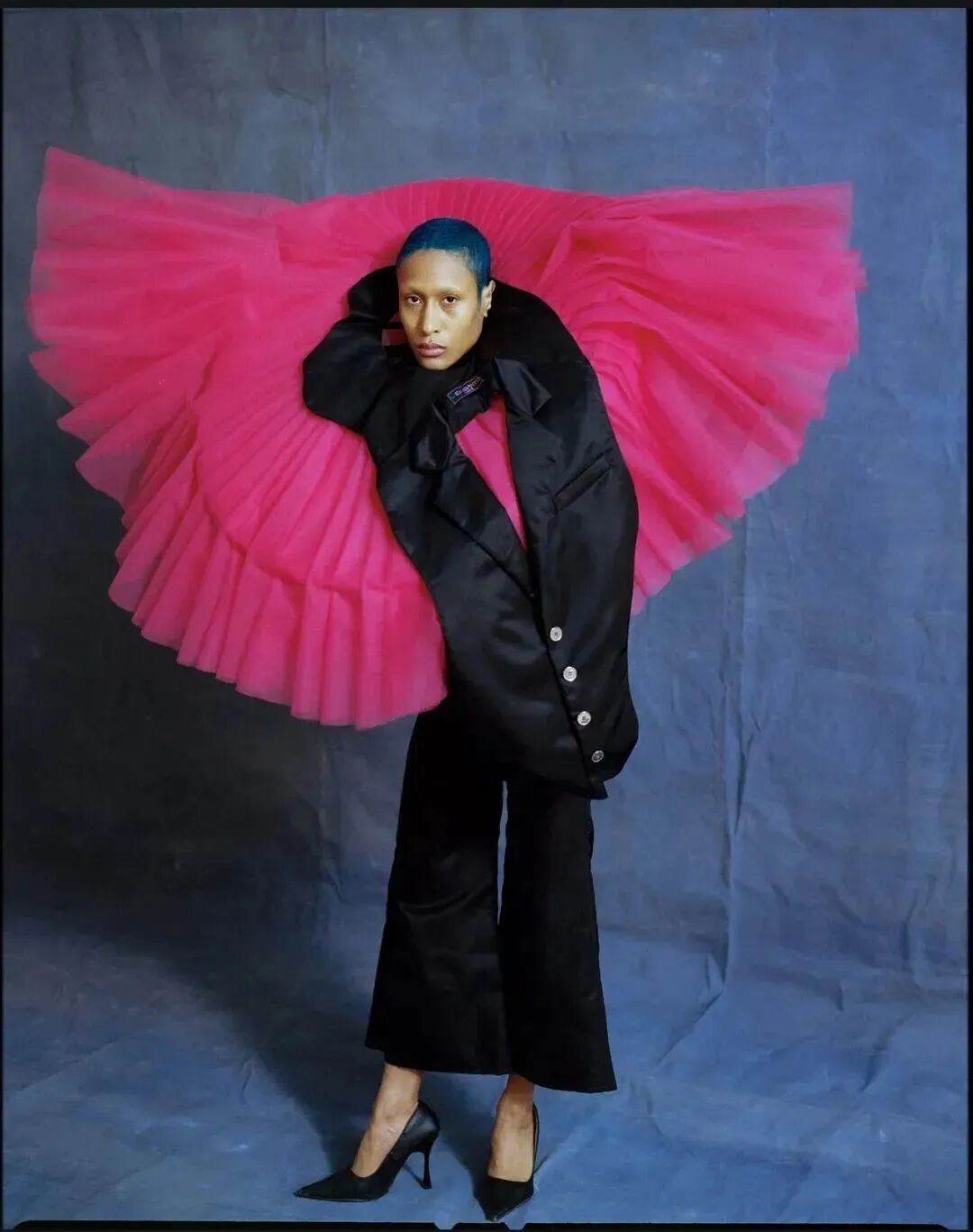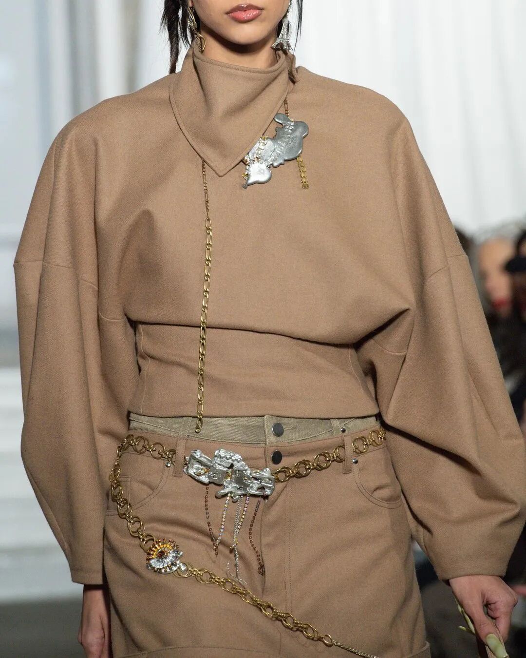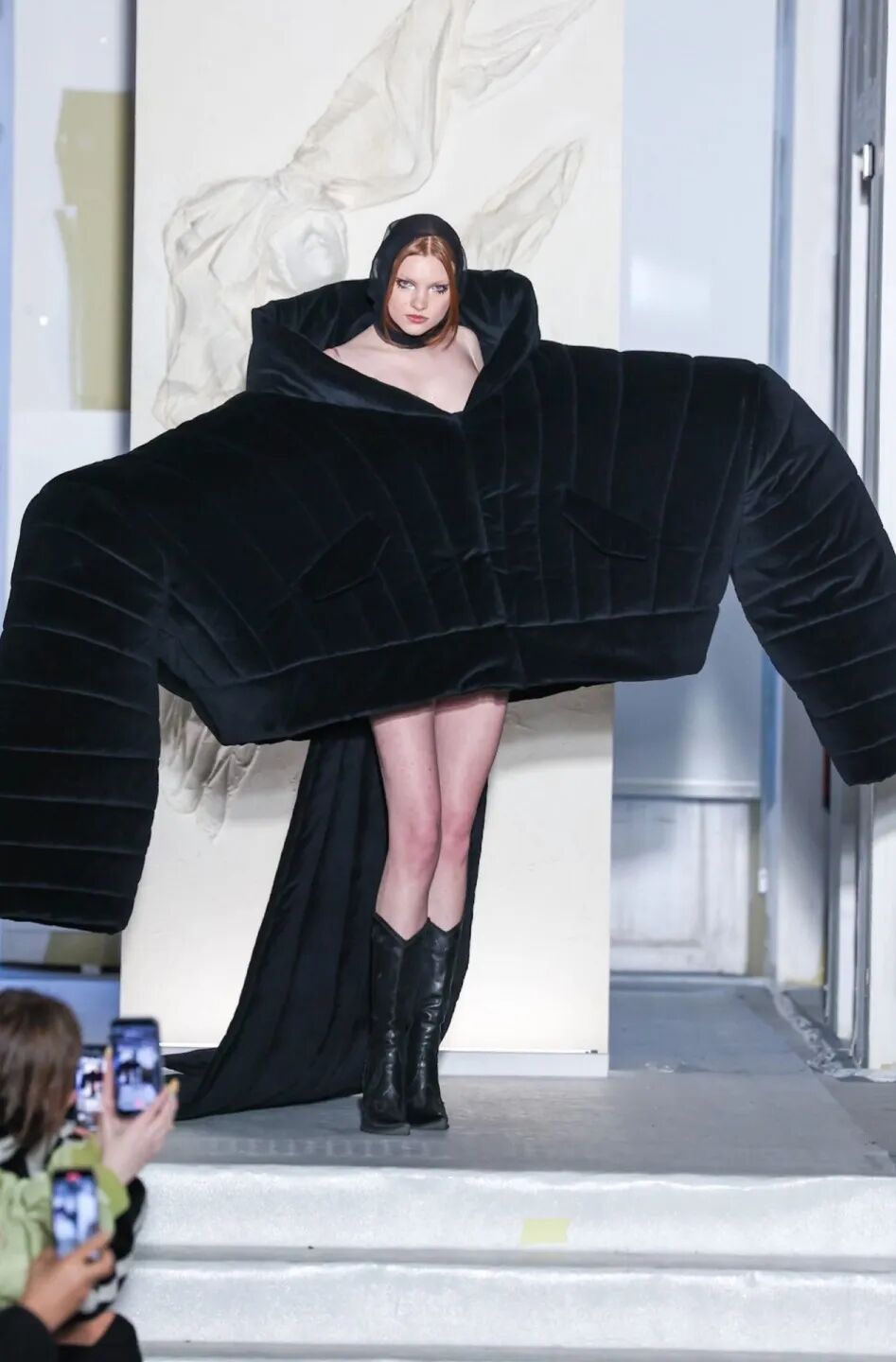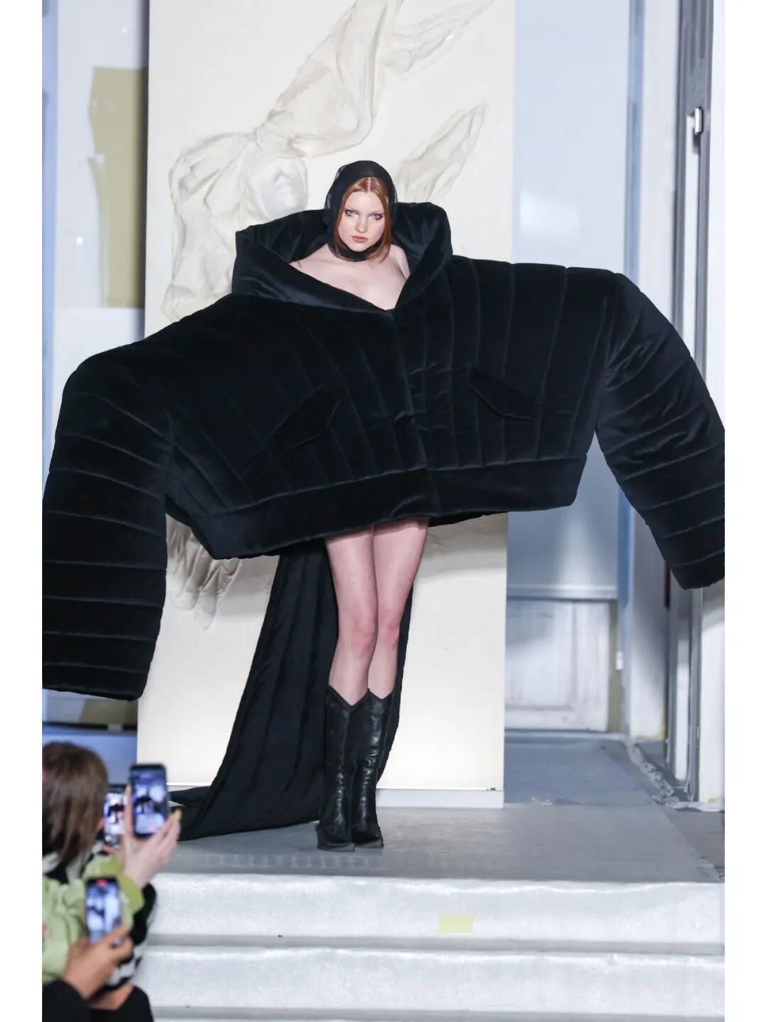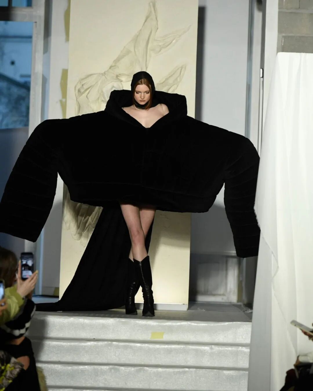 近日,当下炙手可热的法国设计师同名品牌Weinsanto发布2023秋冬系列“The Life we deserve... Or not !”,其中一件巨大廓形上衣单品惊呆众人,超长的垫肩以及袖子让两侧的观众都要往回收,以免被扫到,难道这就是Oversize终极版?