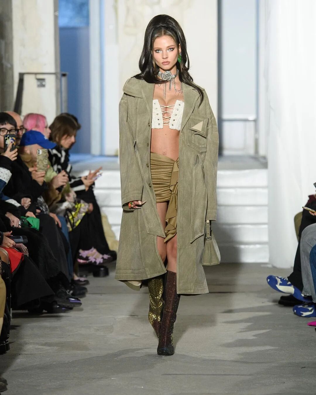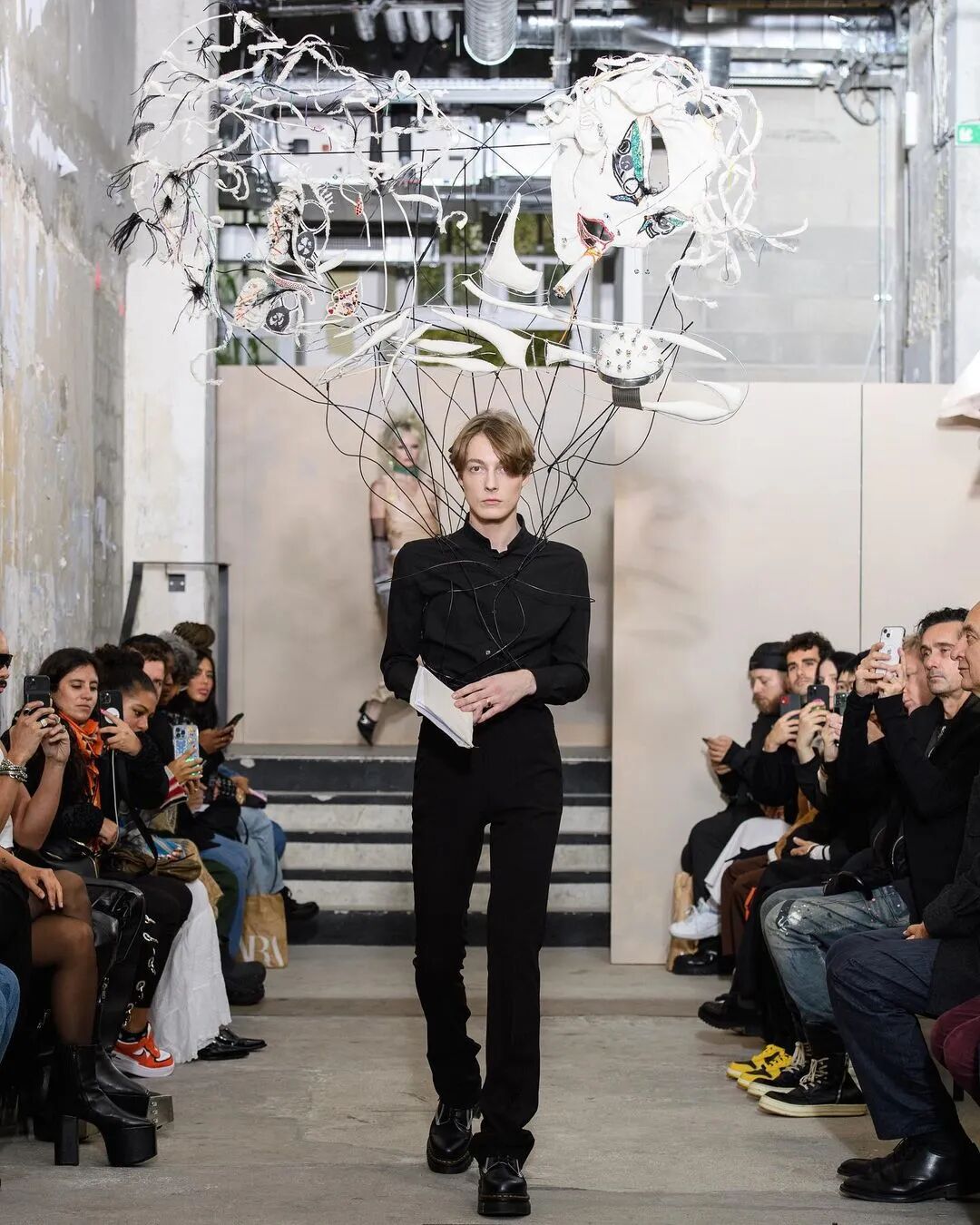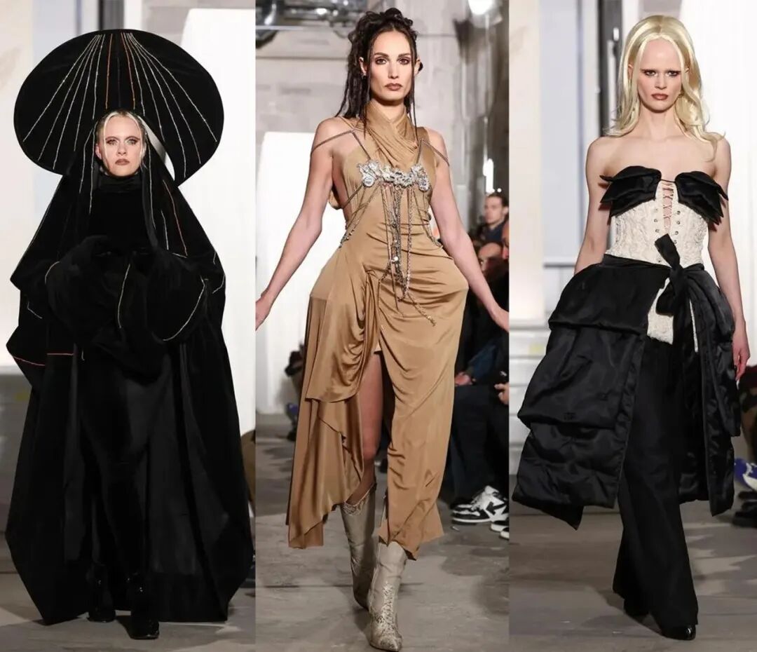 Weinsanto 受到历史、建筑和音乐的启发,从19世纪贵族纪录片中获得灵感,打造了一起怪诞的戏剧性表演时装,街头风格与高级时装结合,充满视觉冲击的造型扑面而来。