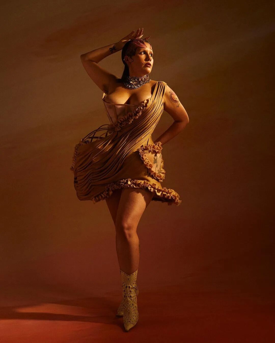 来自巴黎的年轻设计师Victor Weinsanto从小接受芭蕾舞训练,2020年成立同名品牌,曾师从时尚大师Jean Paul Gaultier,Y/Project、和 Chloé 工作过,他对创造超现实的时装并不陌生。2022年,他入围LVMH青年设计师大奖赛半决赛,成为一颗冉冉升起的设计明星。