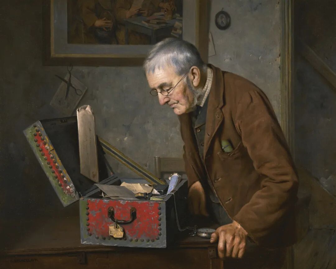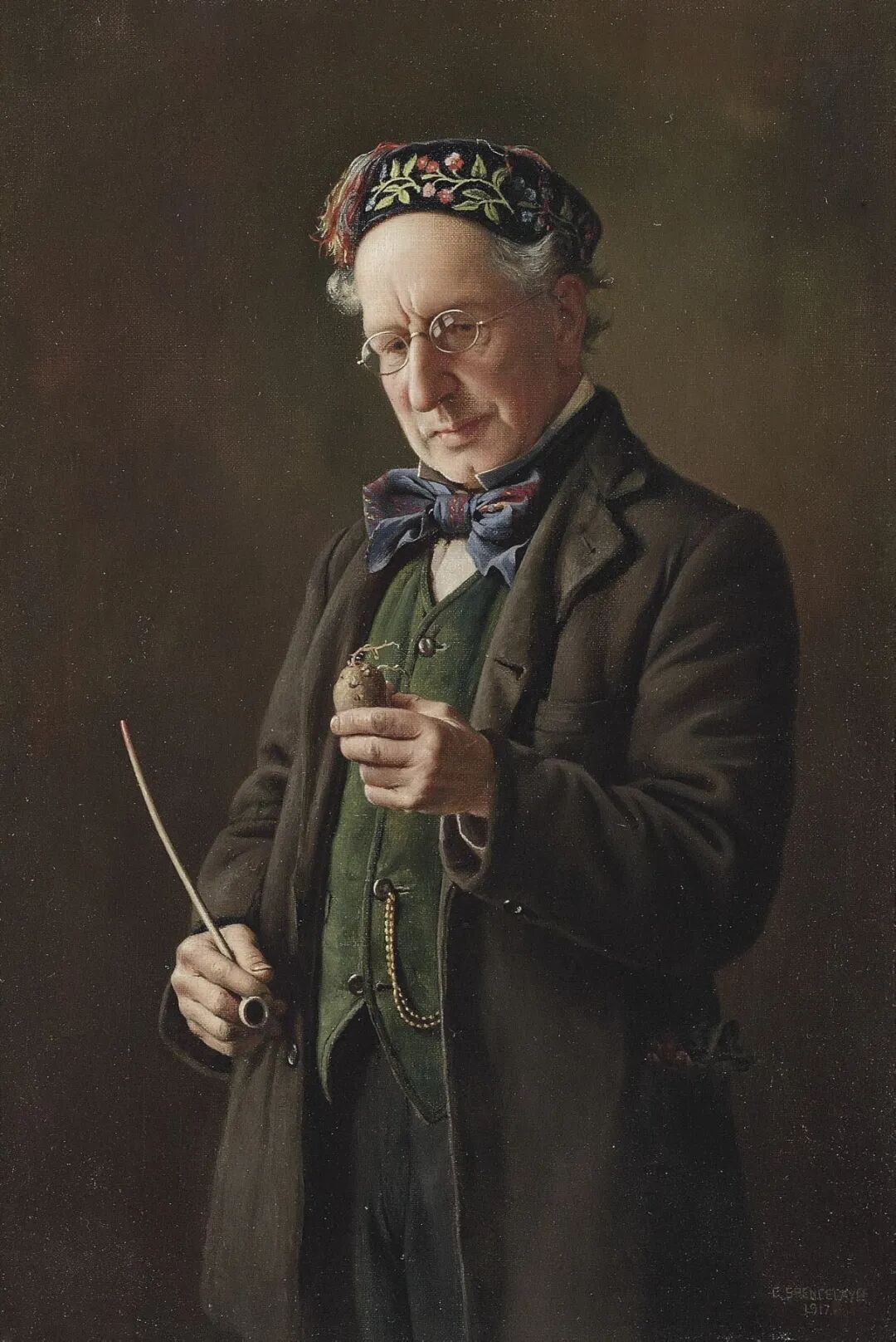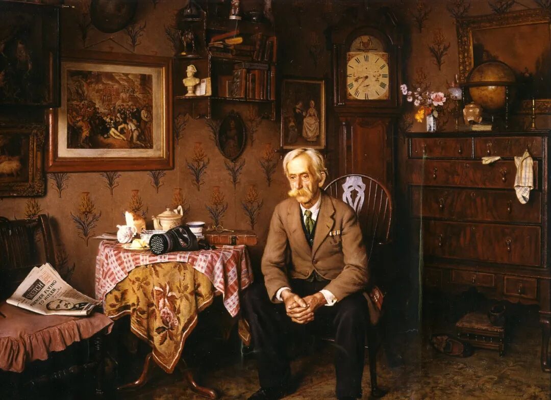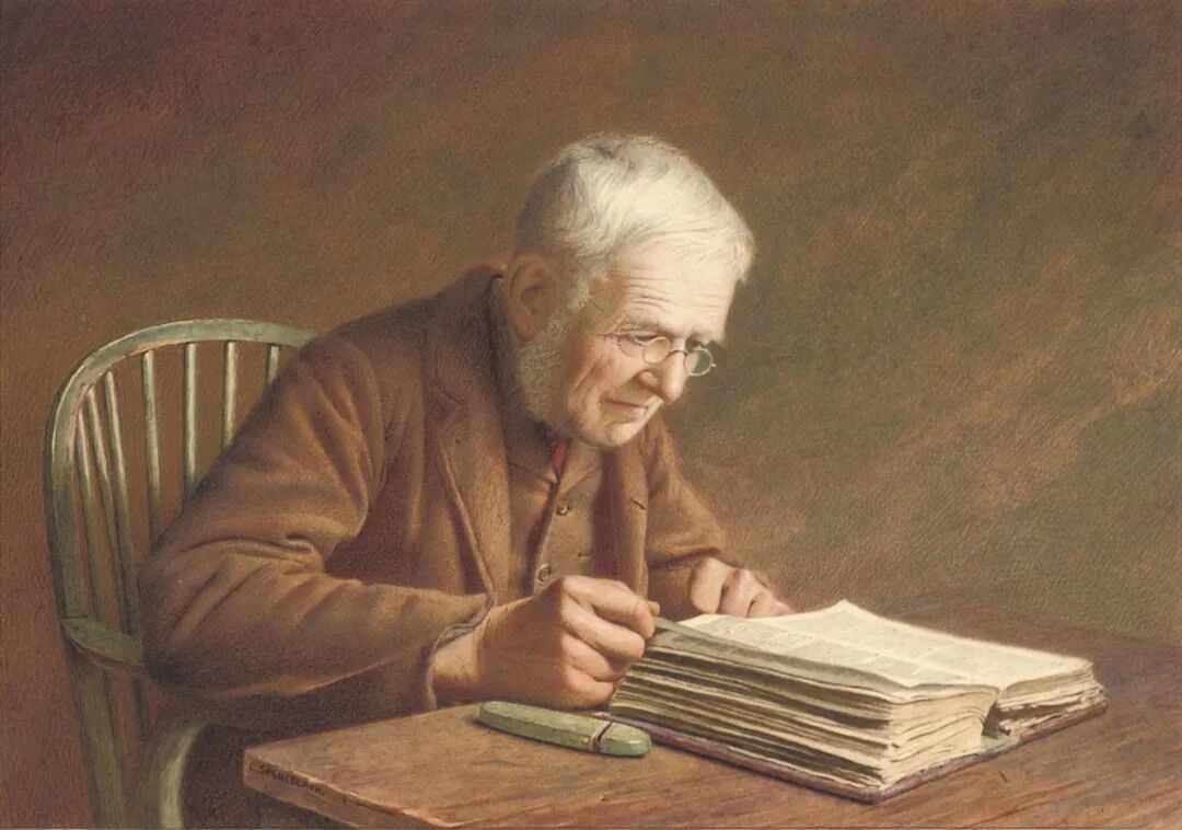 他的许多题材都是家庭场景,画得几乎是摄影式的细节,如《笑着的牧师》(1935年)和《他的每日口粮》(1946年)。