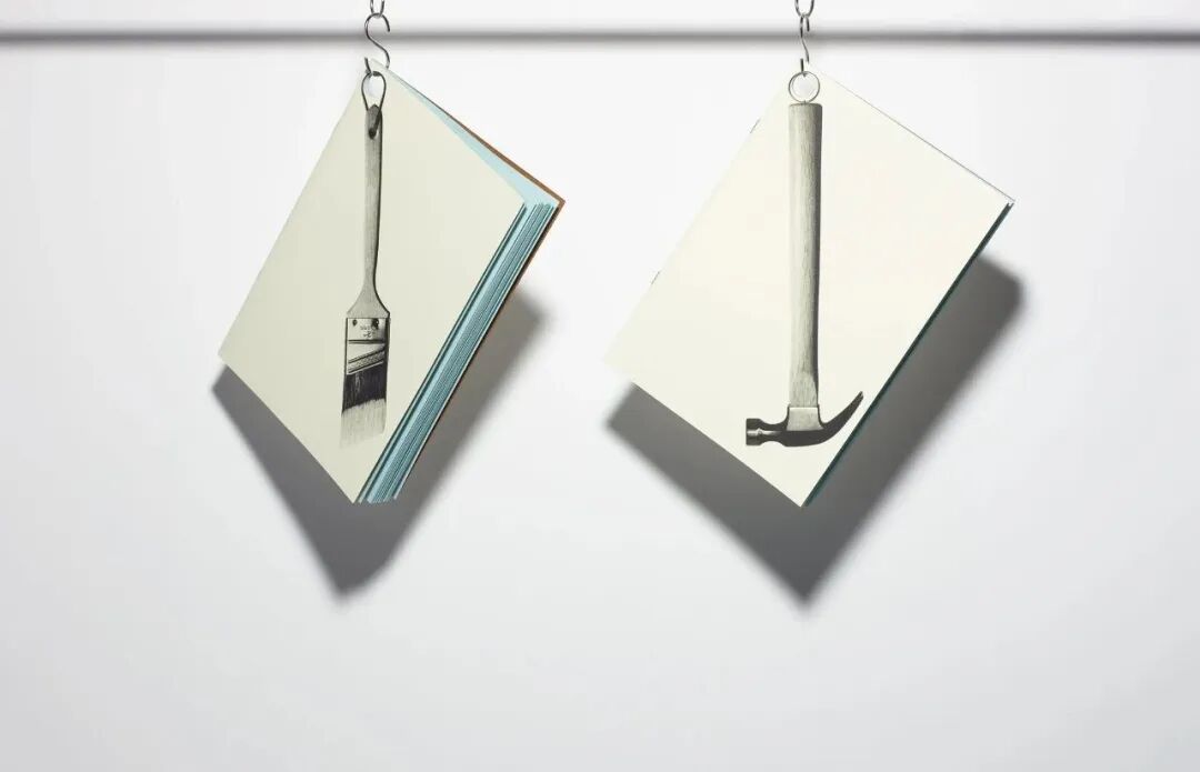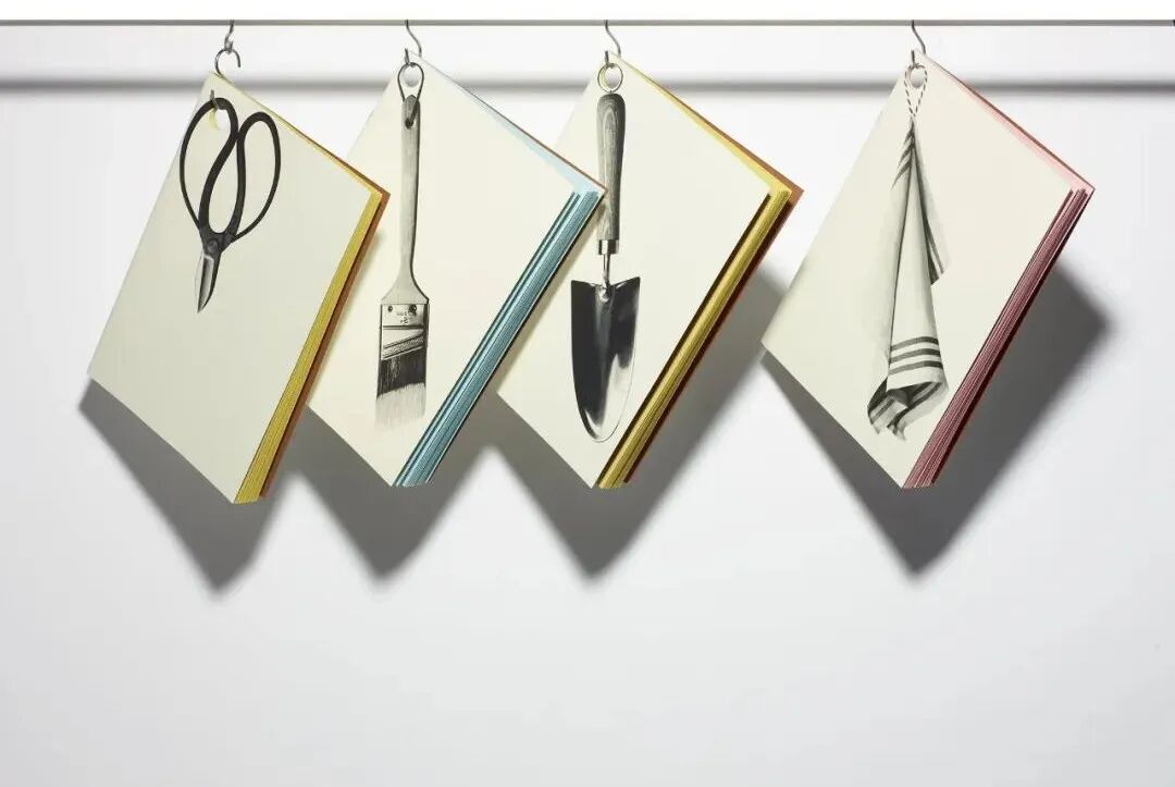 将笔记本的封面印上了悬挂在家里的工具,剪刀、刷子、毛巾等等,趣味十足。把它挂在家里,看看你会不会拿错!