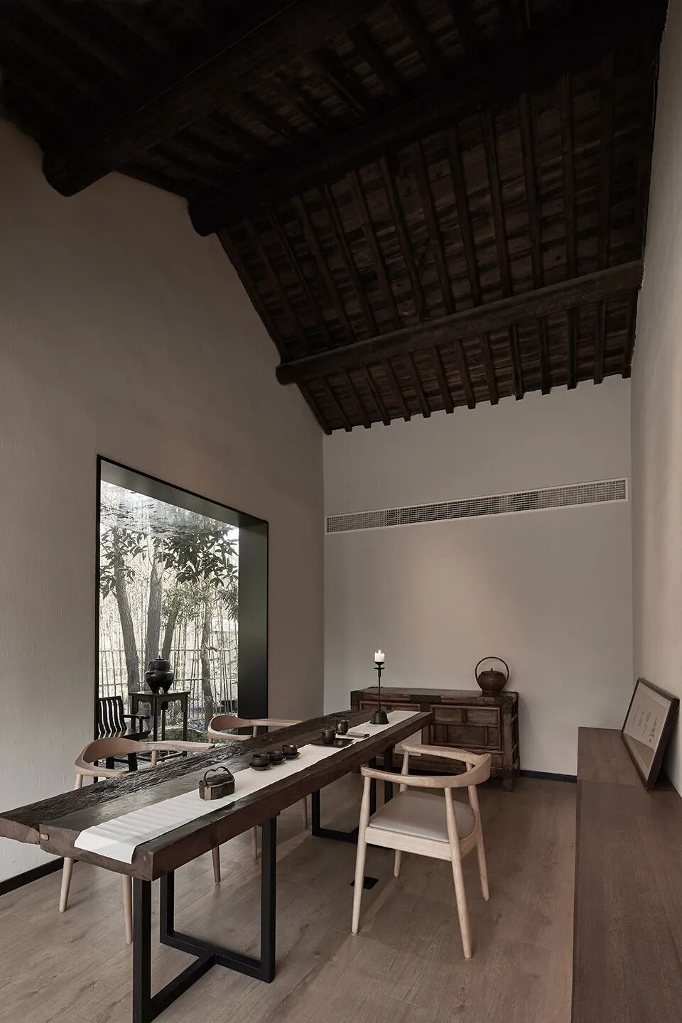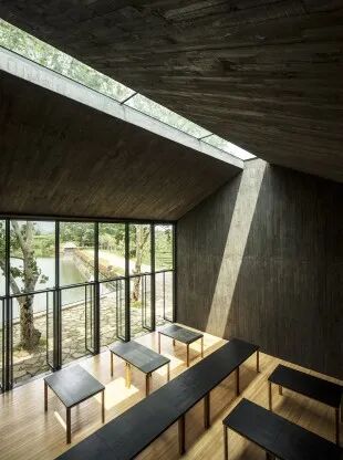 茶室改造前存在着不透光、封闭和建筑老旧等问题。设计师沈墨和陶建浦在与业主沟通和对茶室的了解分析后,他们希望能够打破传统,同时又保留传统,达到文化与建筑的共生目的。正如客户所希望的那样 ——“一个用风景读客的地方”。