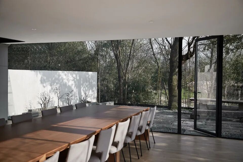 茶室中有着一间大型会议空间,可以在此开设会议、论坛进行交流。品茶观景,让会议变成是一件怡然自得的事情,模糊了规则的边界,也能让思考更加具有效率和意义。
