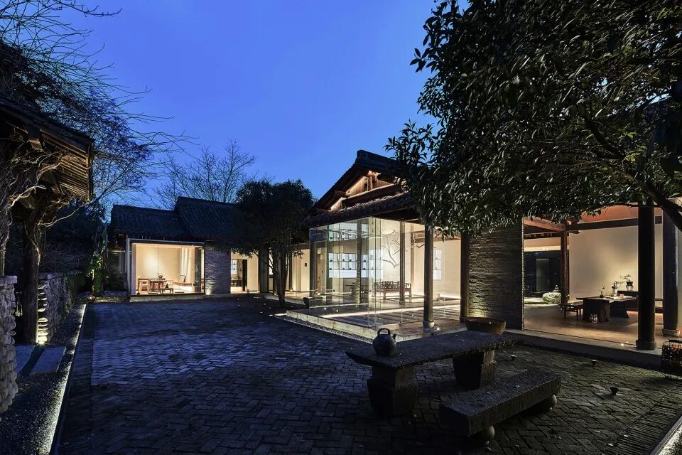 每间茶空间的设计根据不同的景观环境量身打造,此处的茶空间被一片竹林包围,同时又融入了一点当代元素,古与今的无界对话,席地而坐,享受在竹林中畅谈品茶的乐趣。