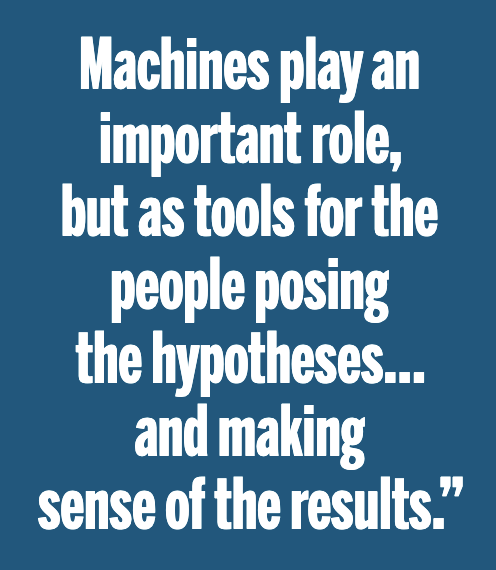 Machines play an important role, but as tools for the people posing the hypotheses...and making sense of the result