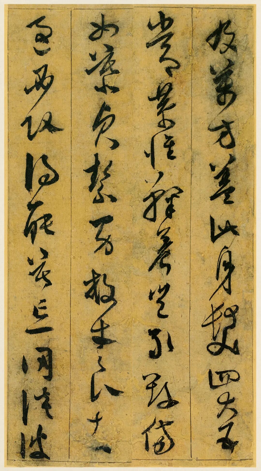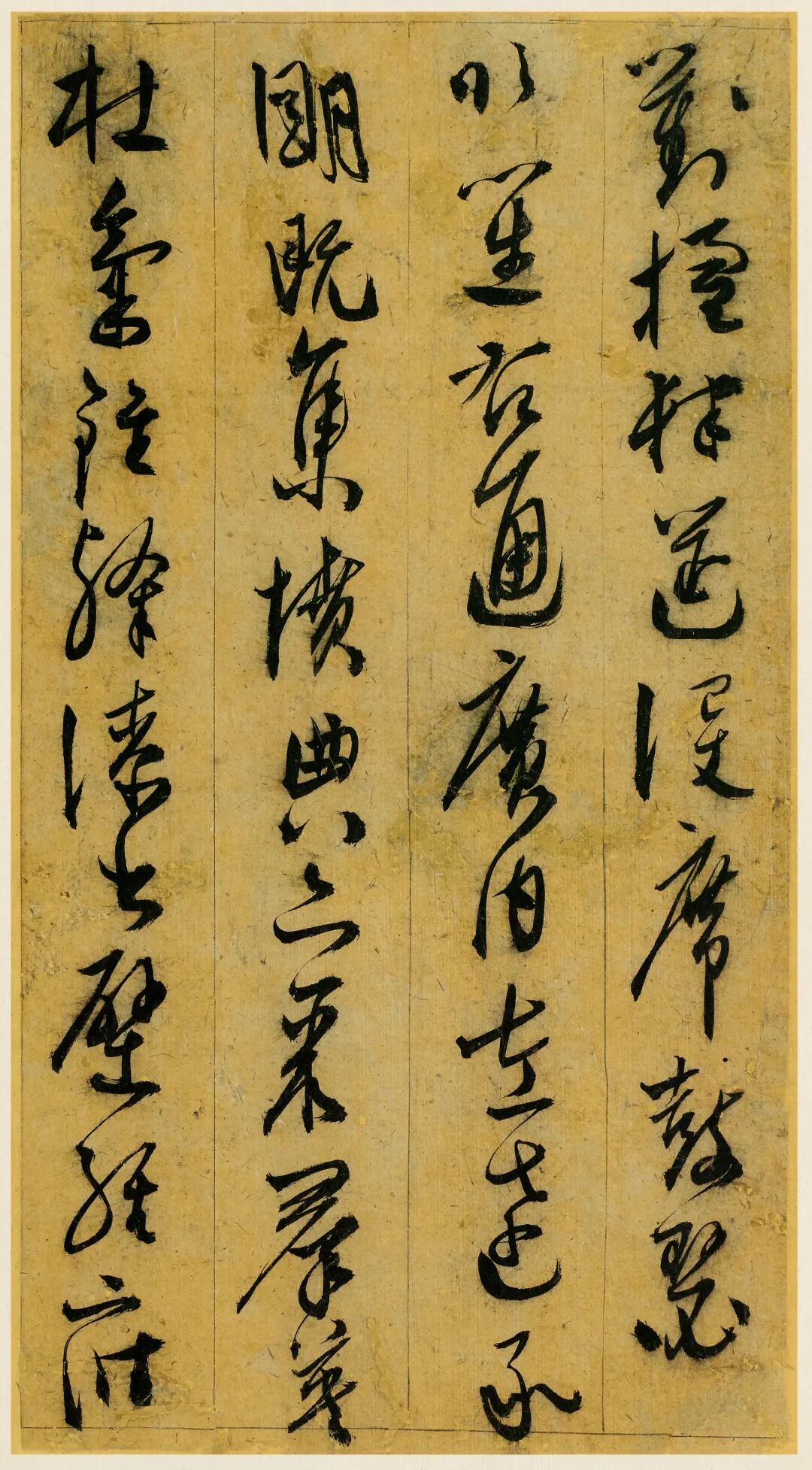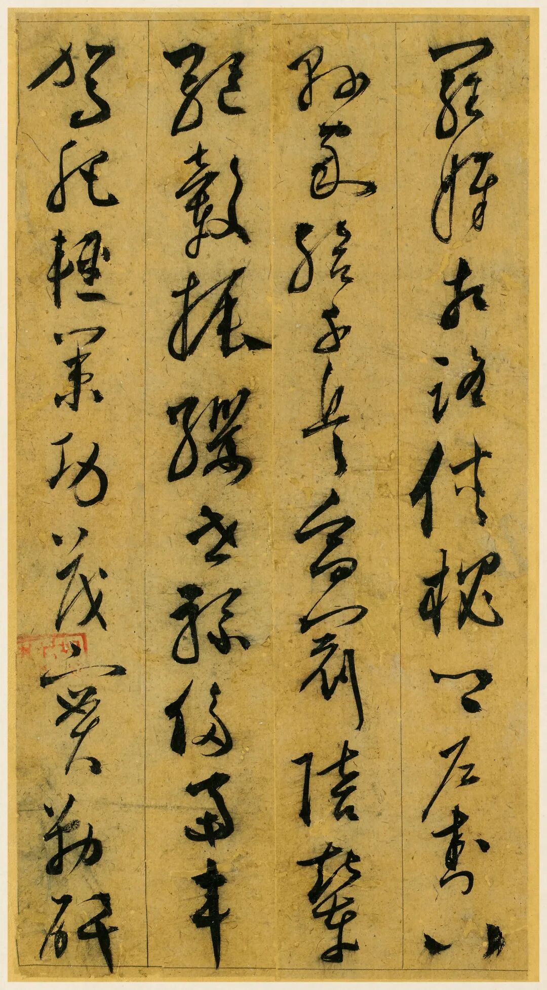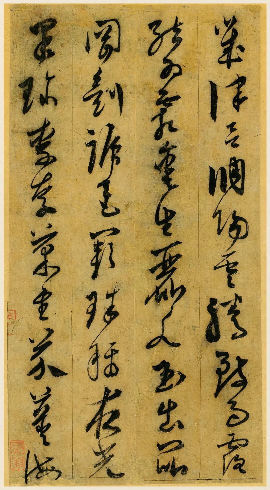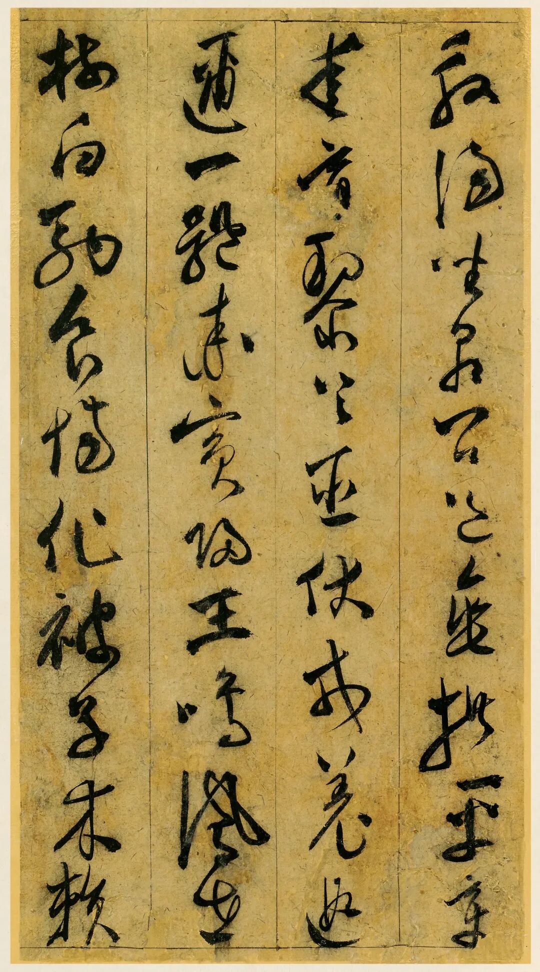 除了笔法与用墨外,纸张也是此册值得留意的看点。近墨堂本陈淳《草书千字文》为金粟山藏经纸本,纸为北宋治平年间(1064-1067)宋人印《大藏经》时特制,其上有,明代中期被发现并散出。此纸坚韧紧密,常被揭成两片,背面可用于书写、作画,书写感极佳,甚名贵。陈淳极为钟爱,他不但经常用它作书,也用其作画。光滑的纸面使其行草更为流利,而墨色滋润有神采。此册纸墨精良,实为陈淳晚年佳品。