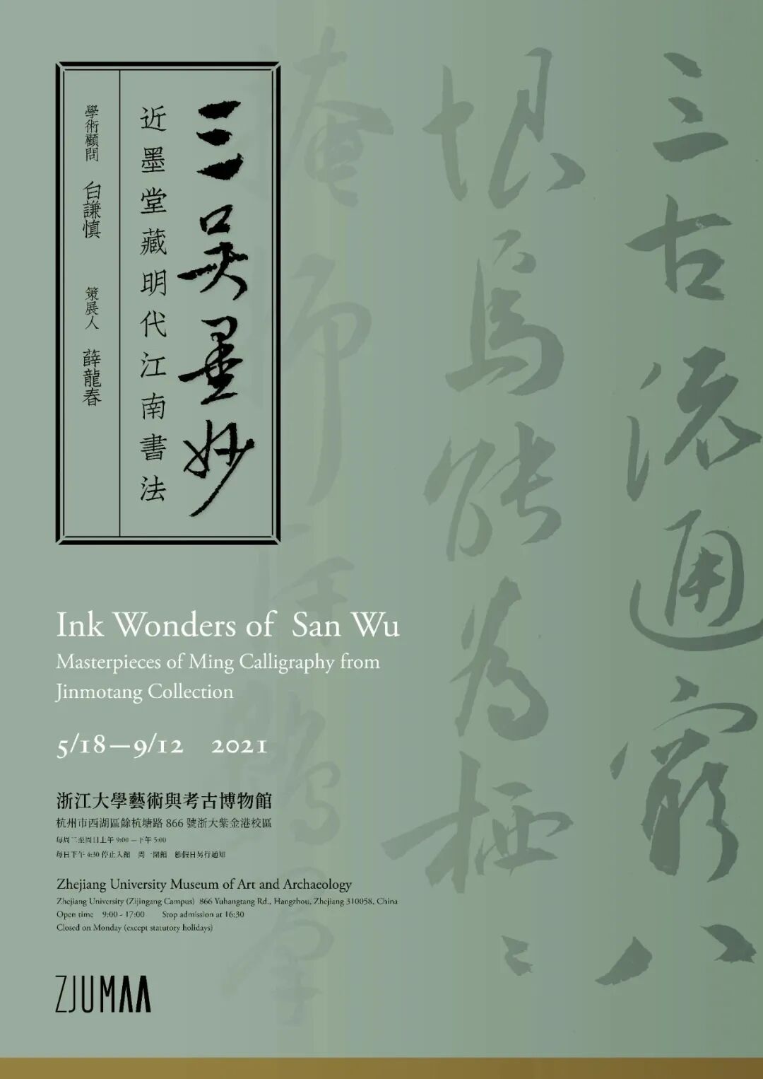 2021年5月18日,因疫情延期而为业内外期待已久的“三吴墨妙:近墨堂藏明代江南书法”展览在浙江大学艺术与考古博物馆开幕,展览精选93件(套)书法、绘画作品,纵跨明代300年,试图完整呈现16世纪以吴门书派为中心的明代江南书法的发展历程,其中绝大多数展品为首次面向公众展出。