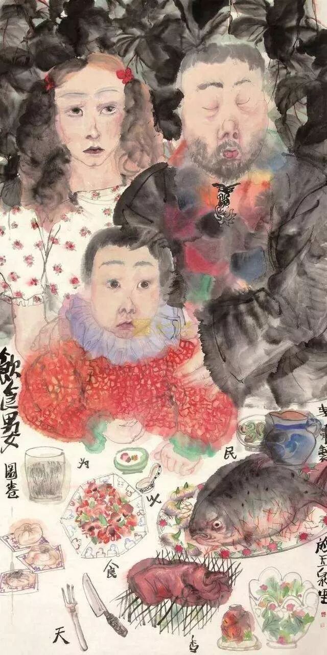 解放后这一路断掉了,于是画工农兵。其实你现在画的才叫真正的“人民”——画我家、我老婆、我爱人、我儿子……凡是古老的画种,只有找到新的、没画过的素材,它的语言就可能创新。武艺的国画类似野兽派一路。你把国画顺到油画里,又把油画顺到国画里,是“两栖动物”。